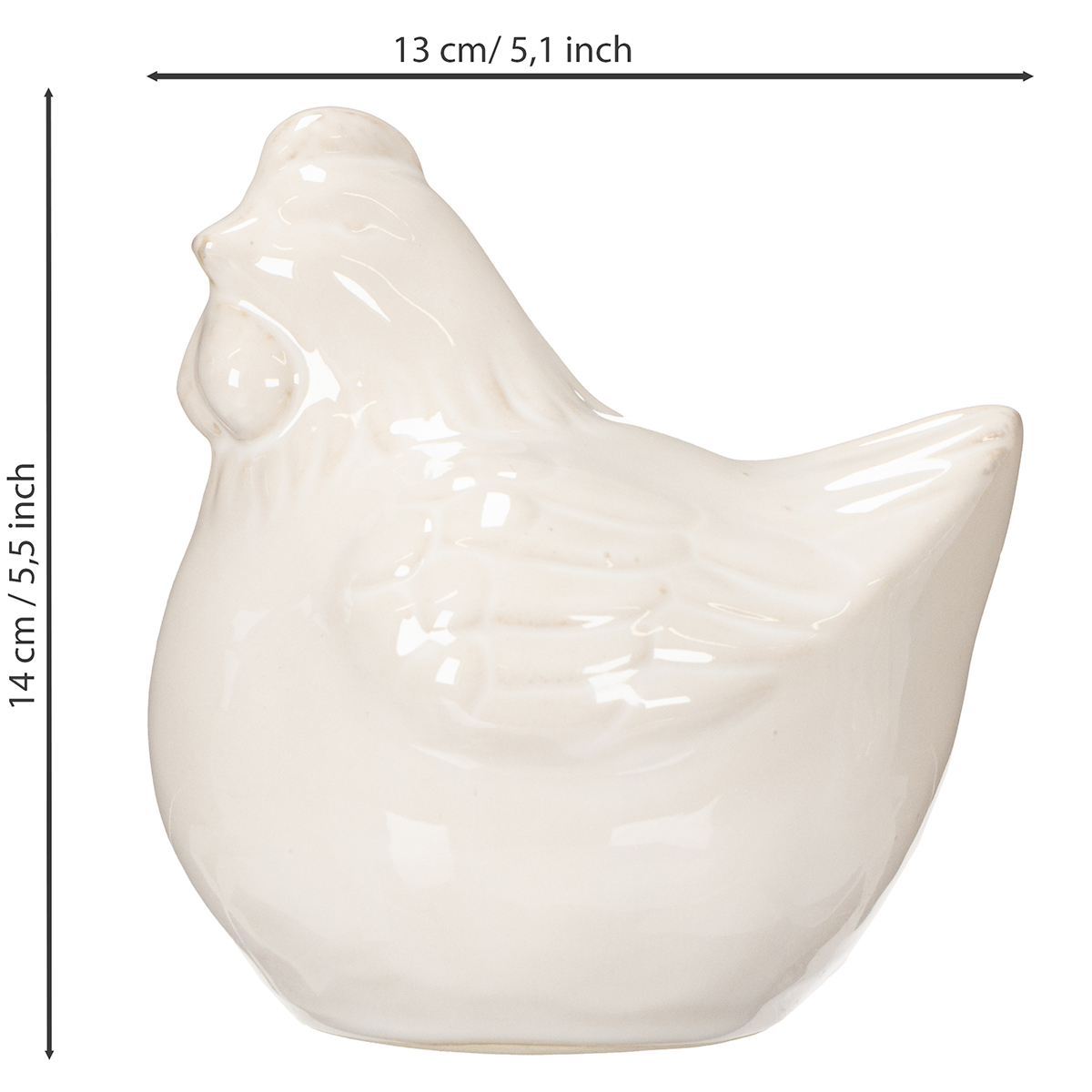 Produktnavn: Kyllingefigur, blankglaseret, til moderne boligindretning, 17 cm, 2 stk.