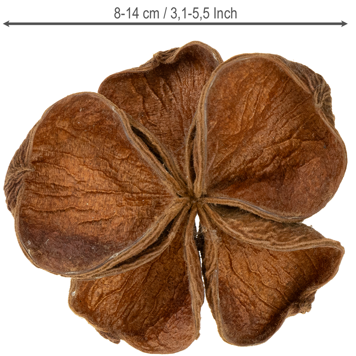 Land lotus i sin naturlige farve er pakket i en pose med i alt 50 frugtgrupper. De stjerneformede grupper har forskellige diametre fra ca. 8 til ca. 14 centimeter, mens de individuelle frugtkapsler kan være mellem 3 og 7 centimeter store. Da dette er et naturligt produkt, kan størrelserne afvige fra de specificerede dimensioner.