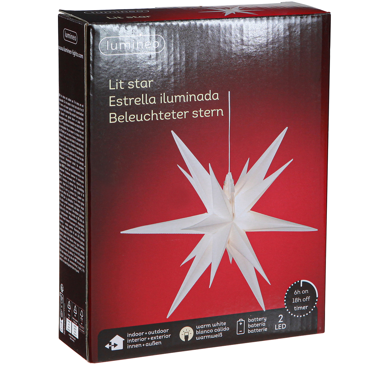 LED stjerne 3D hvid timer batteri udvendig Ø30cm H74cm