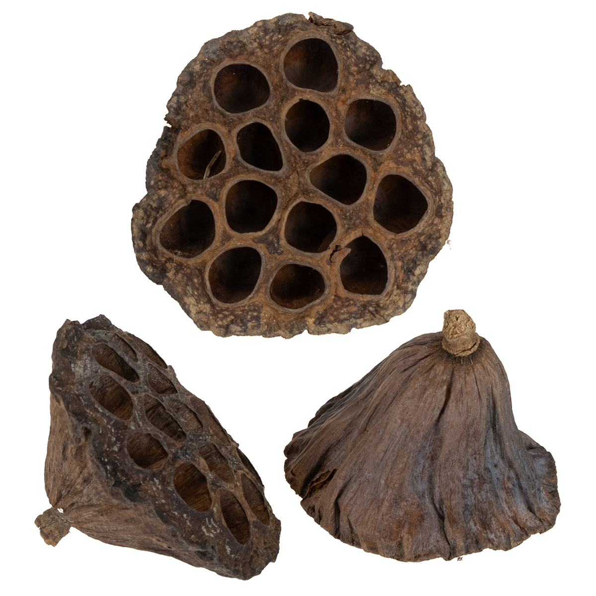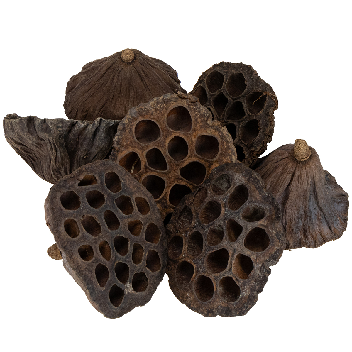 Lotus-kolben i sin naturlige farve er 100 stykker i en stor taske og kan som et naturprodukt afvige fra de specificerede dimensioner. De woody lotus-kolber kan derfor have en størrelse på ca. 4,5 til 6,5 centimeter og en diameter på 6 til 9 centimeter.