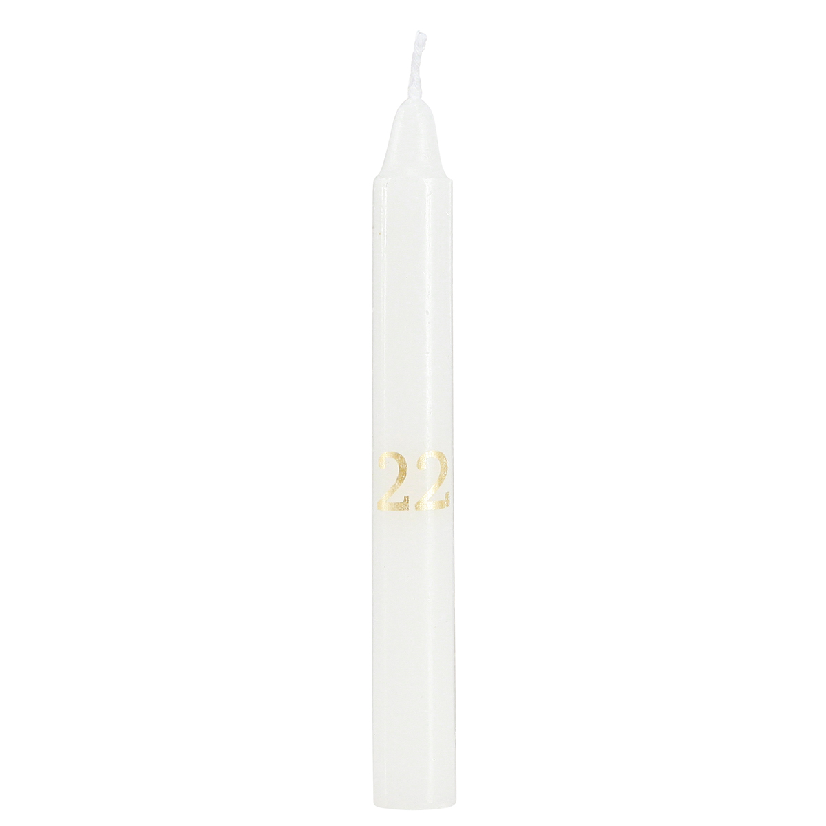 - Elegante hvide stearinlys med gyldne tal fra 1 til 24