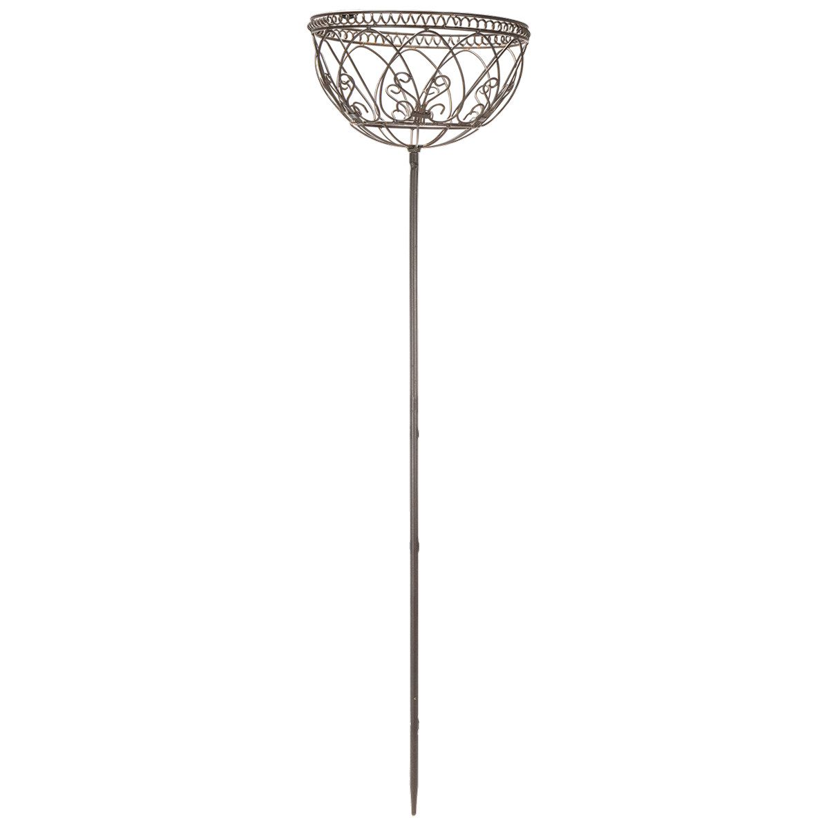 Denne metalkurv på en pæl er meget mere end blot simpel havedekoration – det er et unikt dekorativt stykke, der fortæller en historie. Dens kunstfærdige håndværk med flydende linjer og delikate detaljer afspejler elegansen i vintage-stilen. Brug den som en dekorativ kurv til at fremvise friske blomster, krydderurter eller sæsonbestemte dekorationer som påskepynt. Alternativt fungerer den som en stilfuld metalhavedekoration, der skaber et slående blikfang ved siden af dine havemøbler. Den brune farve harmonerer smukt med træ, rotting eller andre naturlige materialer og kan nemt kombineres med vaser, kunstige blomster eller kranse.