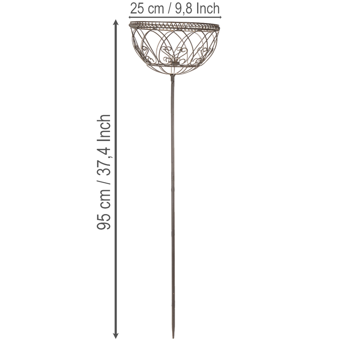 Tilføj et strejf af romantik til din have, terrasse eller altan med denne dekorative metalkurv i vintage-stil. Denne havekurv af høj kvalitet er lavet af robust, brunmalet metal og er perfekt til overdækkede udendørsområder. Med en højde på 95 centimeter og en diameter på 25 centimeter udstråler den elegance og vil helt sikkert fange øjet. Uanset om den bruges som en dekorativ skål i haven, et stilfuldt espalier i vintage-stil eller en urtepotteholder til din terrasse, skaber denne metalkurv en charmerende atmosfære og imponerer med sin alsidighed.