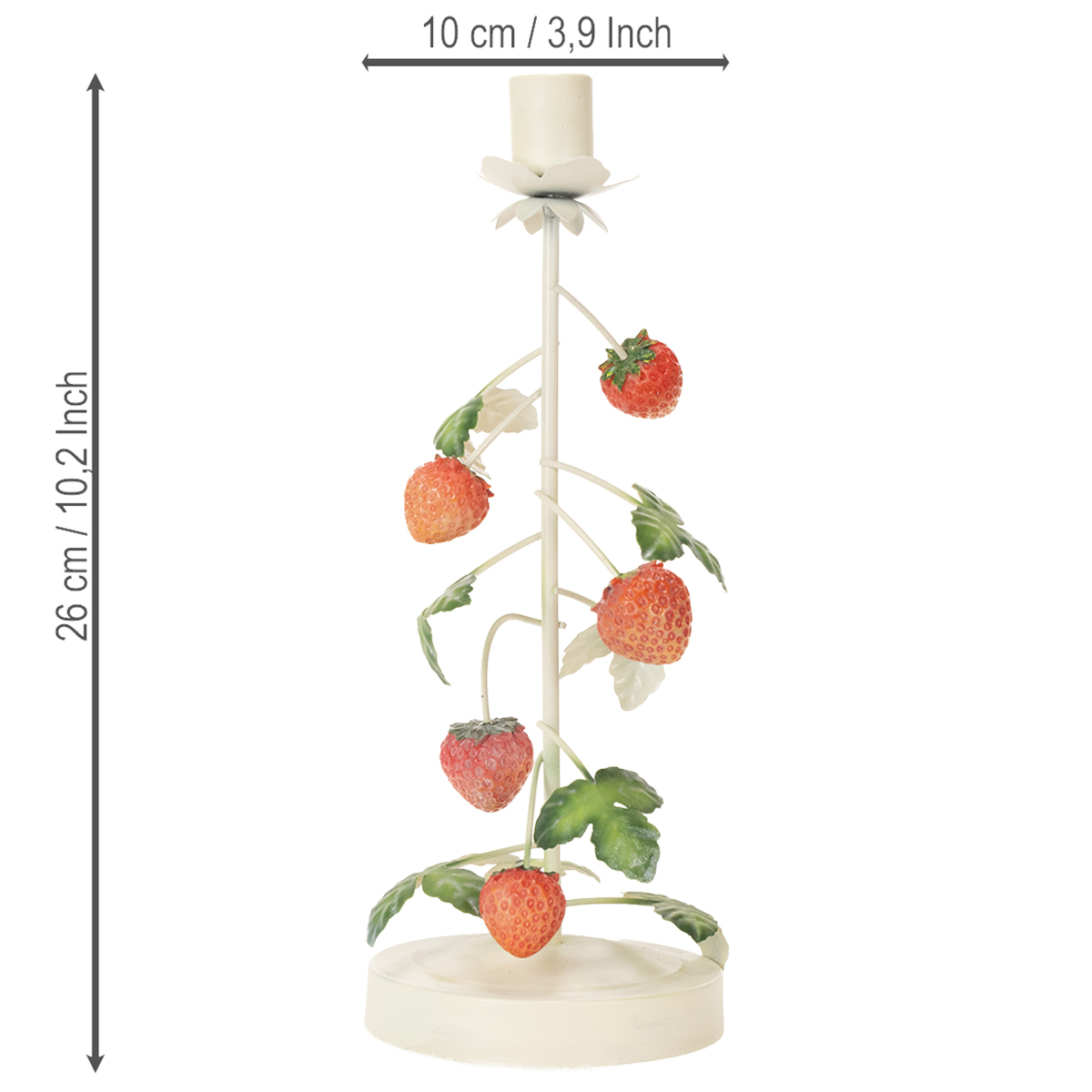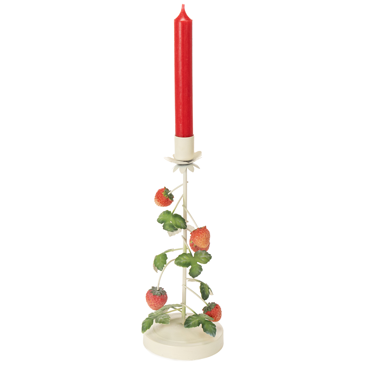 Metal lysestage med jordbærdekoration, cremefarvet, rund, H26 cm