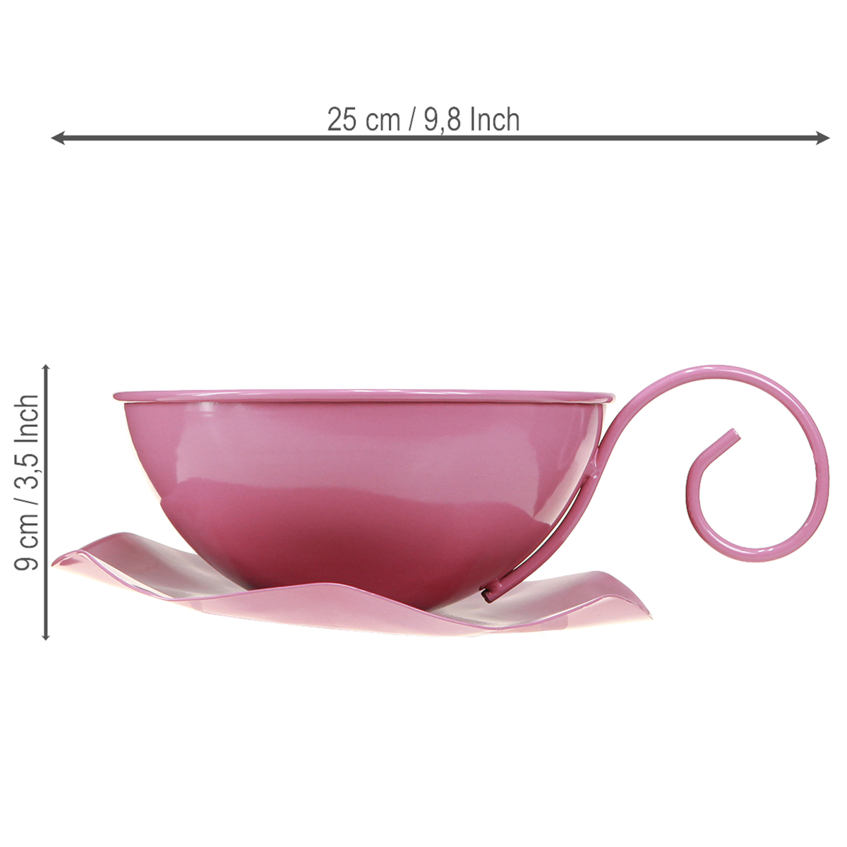 Metalkrus Ø16cm H9cm Dekorativt krus med underkop Pink 2 stk.