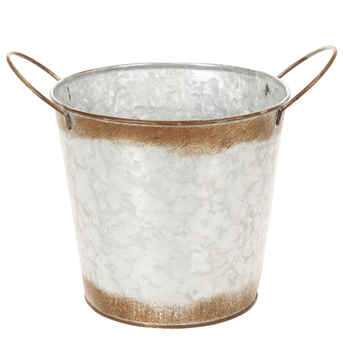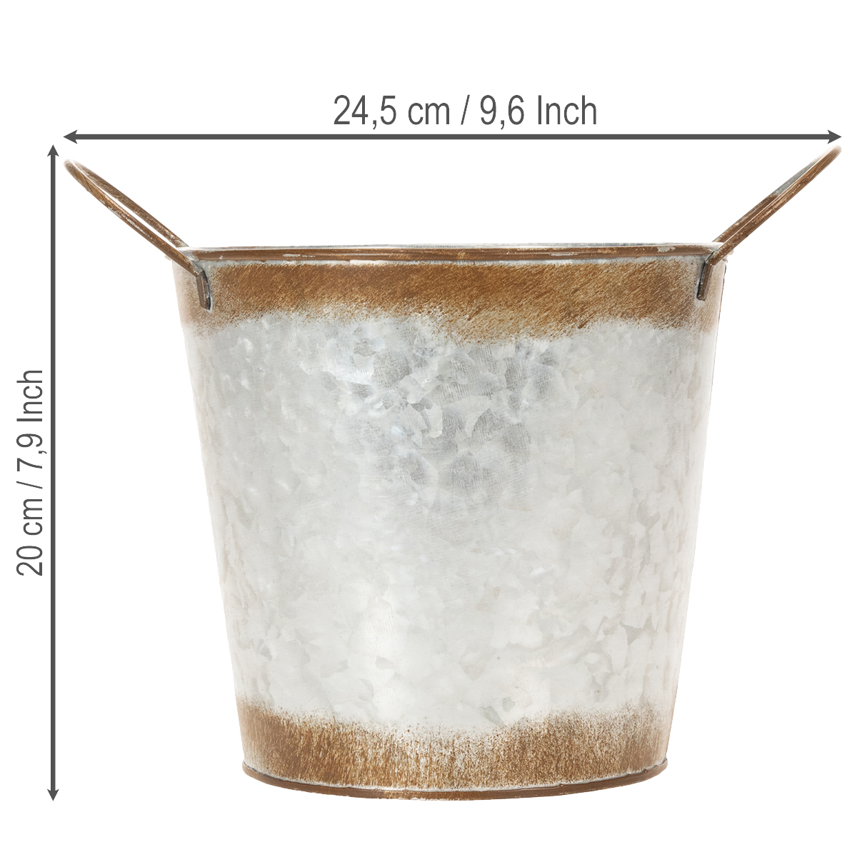 Metalplantekasse, blomsterskål, urtepotte med håndtag, sølv, rustfinish, Ø18 cm H20 cm