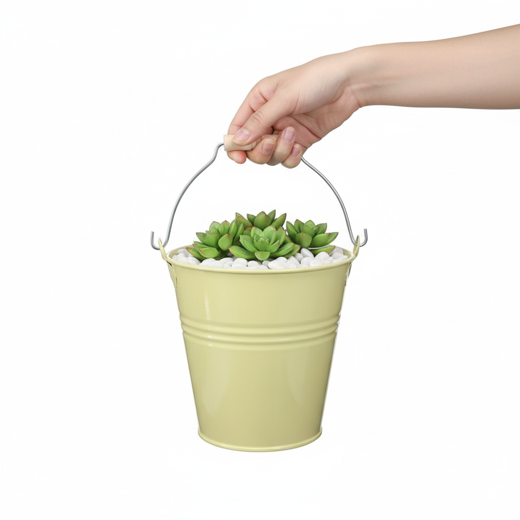 Tilføj et strejf af landhuschic til din stue eller have med den dekorative metalspand som urtepotte i den friske grøn-gule farve. Denne alsidige urtepotte er ikke kun et blikfang, men tilbyder også adskillige anvendelsesmuligheder for kreative hjerner og gør-det-selv-entusiaster.