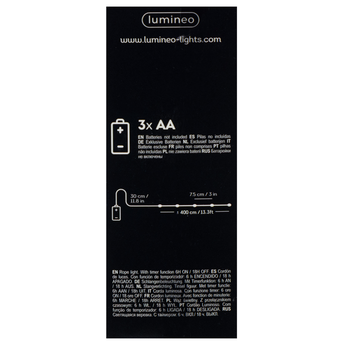 Længde på lyskæde : ca. 390 cm