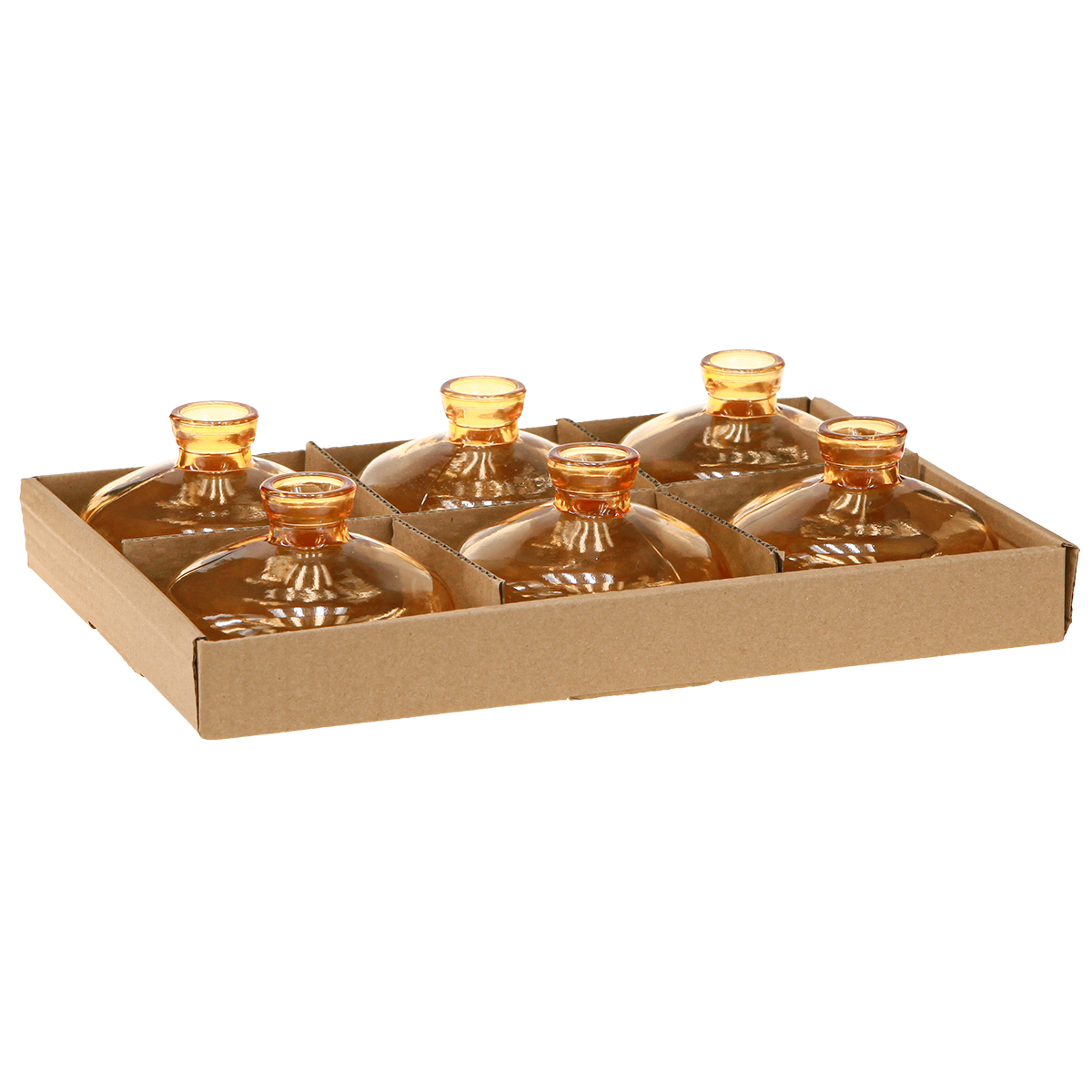 Mini glasvaser, flade, løgformede, orange, Ø9 cm, 6 stk.
