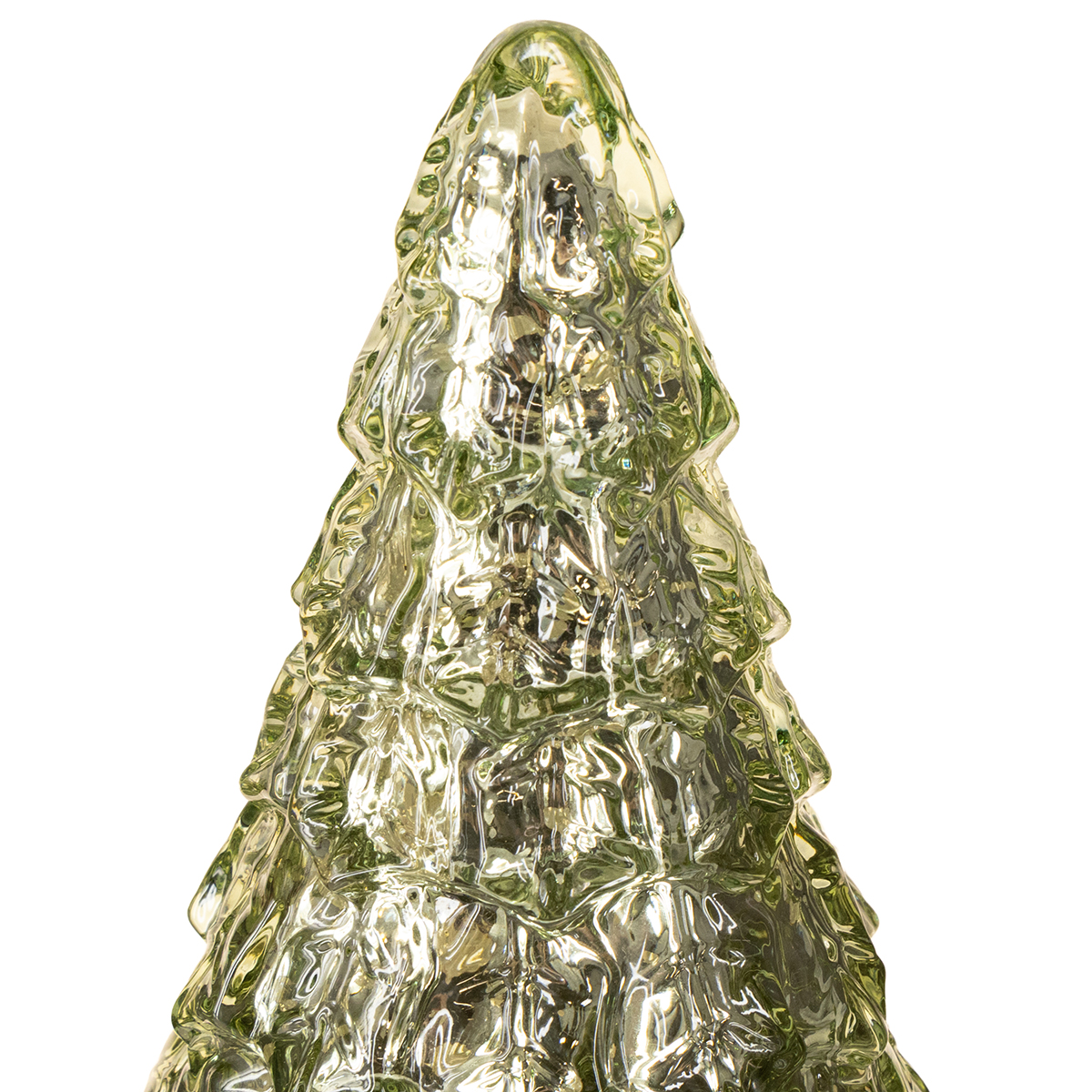 Det sølvgrønne glas med gyldne pletter og bløde lysrefleksioner giver træet et charmerende vintage-look. Med sin højde på cirka 28 cm og sin robuste plastikbase med batterirum kan det fleksibelt og nemt placeres overalt som borddekoration. Elegant, glamourøst og stemningsfuldt – dette LED-juletræ bringer julestemning til dit hjem og vil lyse op i ethvert rum.