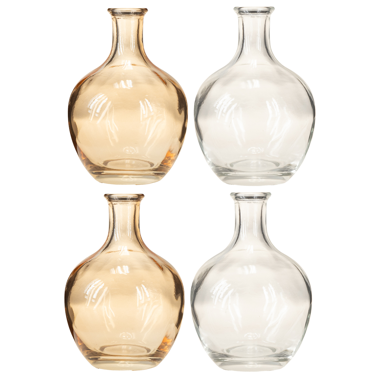 Minivase i glasflaske, ravfarvet og klar, Ø7,5 cm, H11 cm, 4 stk.