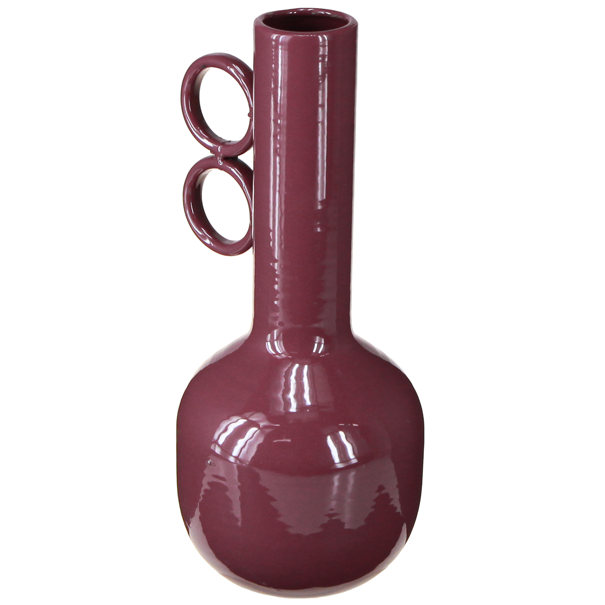 Leder du efter en unik vase, der kan løfte din indretning? Denne moderne vase med sin elegante lange hals og iøjnefaldende runde håndtag er lige, hvad du har brug for! Dens livlige røde farve og kunstneriske design vil tiltrække opmærksomhed i ethvert rum. Uanset om den vises alene eller kombineret med et blomsterarrangement, er denne vase et højdepunkt, der bringer stil og personlighed til dit hjem. Den tilføjer et strejf af elegance og skaber stilfulde detaljer. Perfekt til stuen, entréen eller som et sofistikeret element på kontoret – denne vase er simpelthen fantastisk!