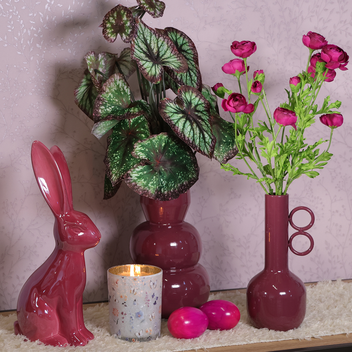 Denne vase imponerer med sit sofistikerede samspil mellem form og funktion. Dens slanke, lange hals giver den en vis ynde og gør den ideel til stilfuld fremvisning af blomster med lange stilke. De runde hanke – et sandt blikfang – er ikke kun dekorative, men understreger også møbelets moderne karakter. Vasen er fremstillet af massivt metal og scorer ikke kun visuelt point, men også for sin holdbare kvalitet. Den blanke røde finish giver den et luksuriøst præg og gør den til et iøjnefaldende blikfang i ethvert rum.