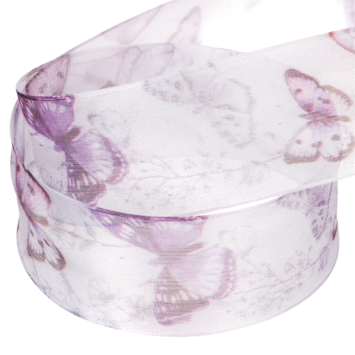Organzabånd, chiffonbånd, sommerfugle, lilla, 40 mm, 18 m