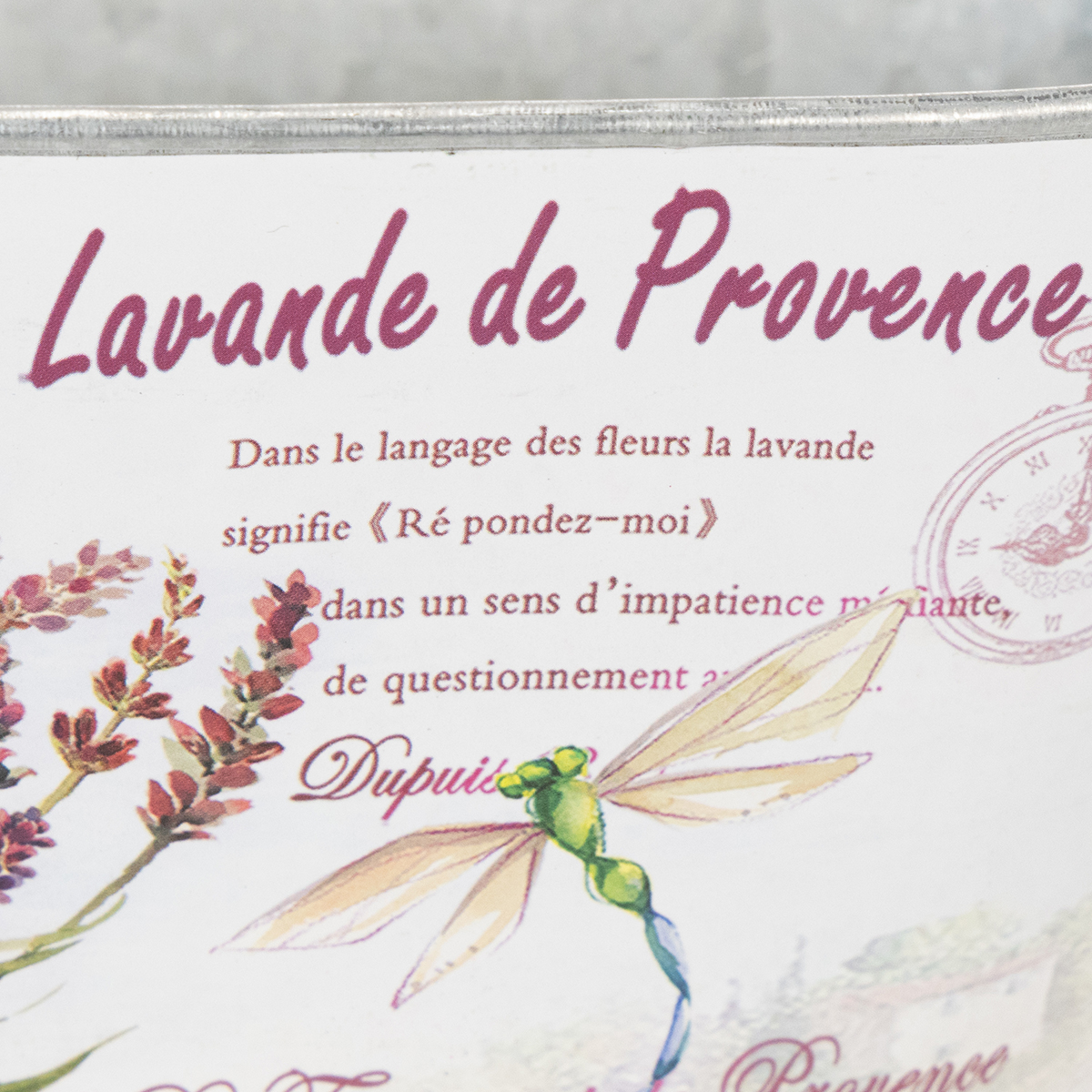 Oplev denne ovale blomsterskål med håndtag og dens subtile lavendel- og guldsmedeprint, der vil bringe ro og sindsro til dine værelser. Metalskålen har et rustikt og nostalgisk look på samme tid.