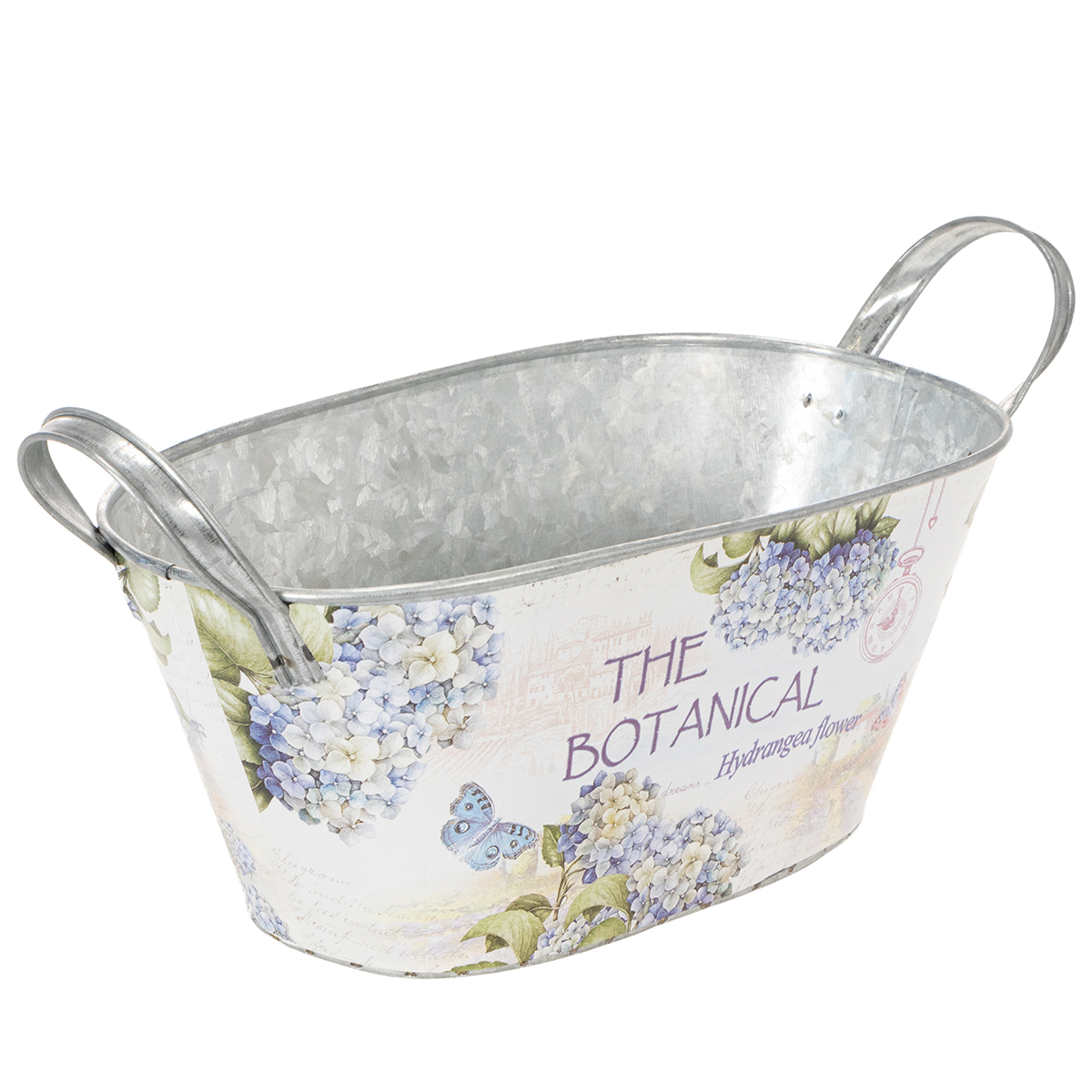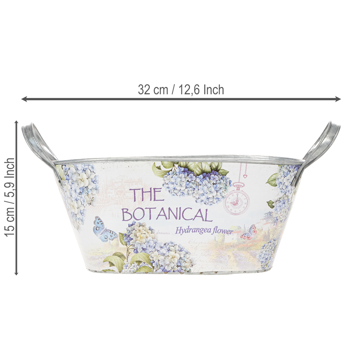 Oval metalblomsterskål med håndtag, til hortensiaer, 32×15×15 cm
