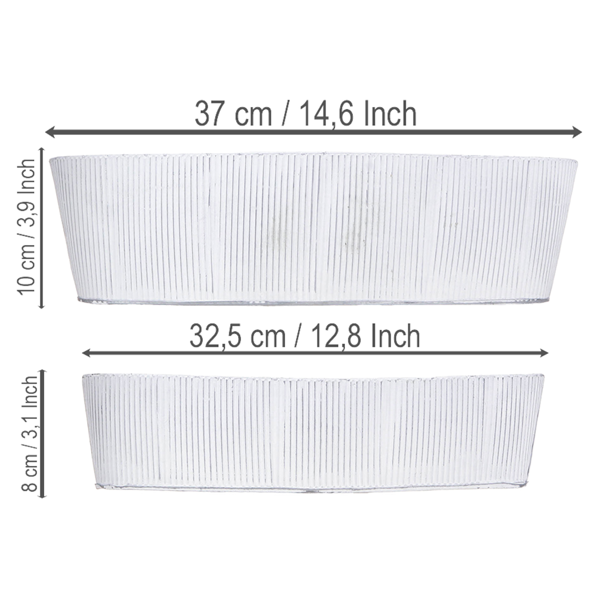 Den ovale metalskål i hvid og sølv bringer et strejf af retro og vintage til dit hjem. Med deres hvidvaskede ydre overflade og sølvbelægning på indersiden tilføjer disse metalskåle accenter til din værelsesindretning. Den enkle, ovale form appellerer til moderne design, som problemfrit kan integreres i en moderne eller skandinavisk indretningsstil – ideel som stilfuld, elegant borddekoration. Kombineret med tilbehør fra metaldekorationskategorien i Floristik24 giver resultatet et harmonisk helhedsbillede. Den rillede indretning og kombinationen af hvid og sølv understreger den attraktive glans og gør disse skåle til et uundværligt højdepunkt på enhver skænk eller spisebord.