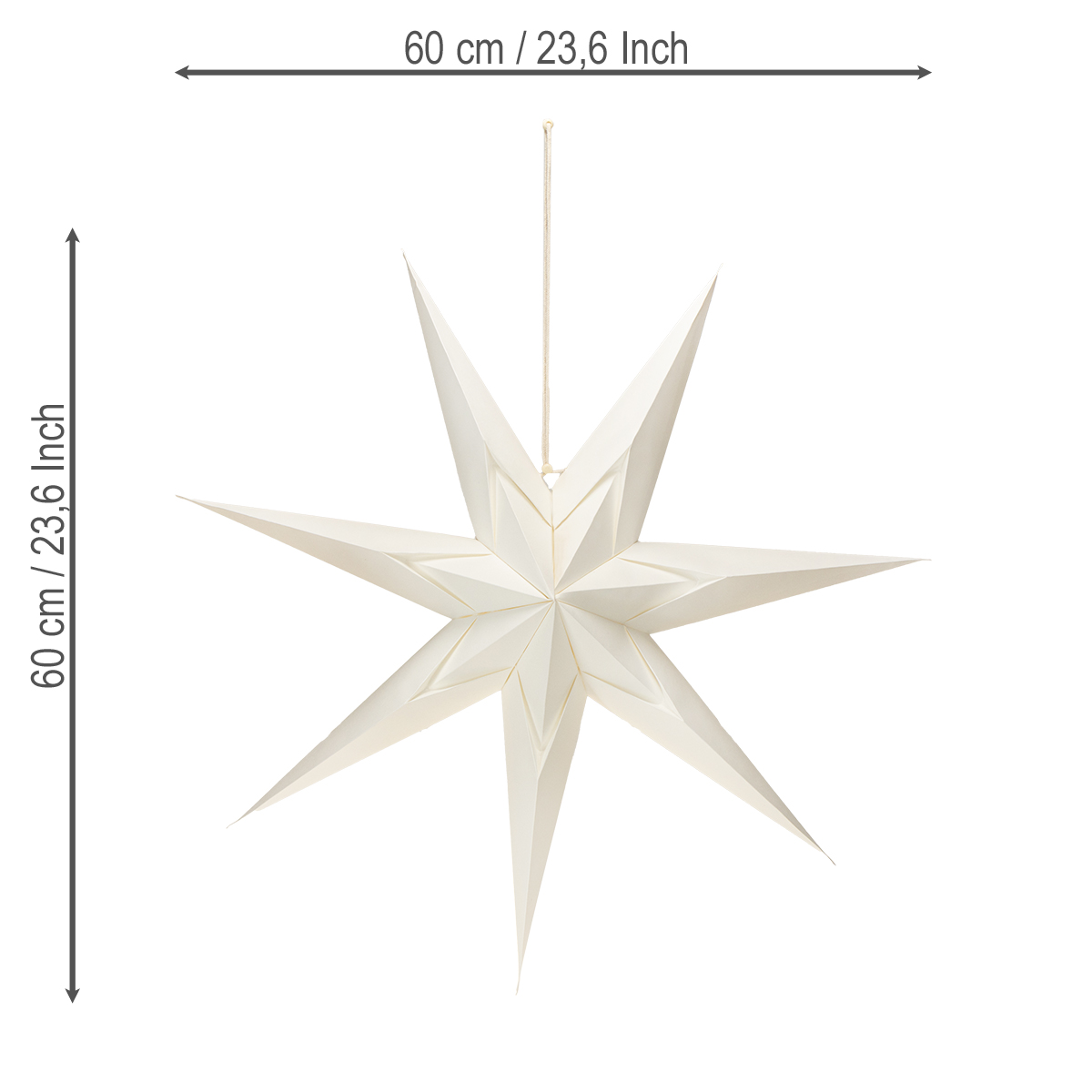 Papirstjerne, cremehvid, stor hængende stjerne, 60 cm