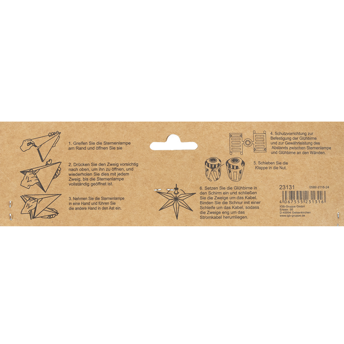 Denne papirstjerne er ikke kun et ægte blikfang, men imponerer også med sit højkvalitetsarbejde. Det cremefarvede papir udstråler en behagelig enkelhed, der samtidig er elegant. Med en diameter på 60 cm er stjernen ideel til at dekorere større vinduer, men også hele rum – hvad enten det er som stuedekoration over bordet, som vinduesdekoration med stemningsfuld belysning eller som et blikfang i entréer. Den integrerede bomuldsophæng med snorstopper gør ophængningen nem og sikrer et sikkert greb.