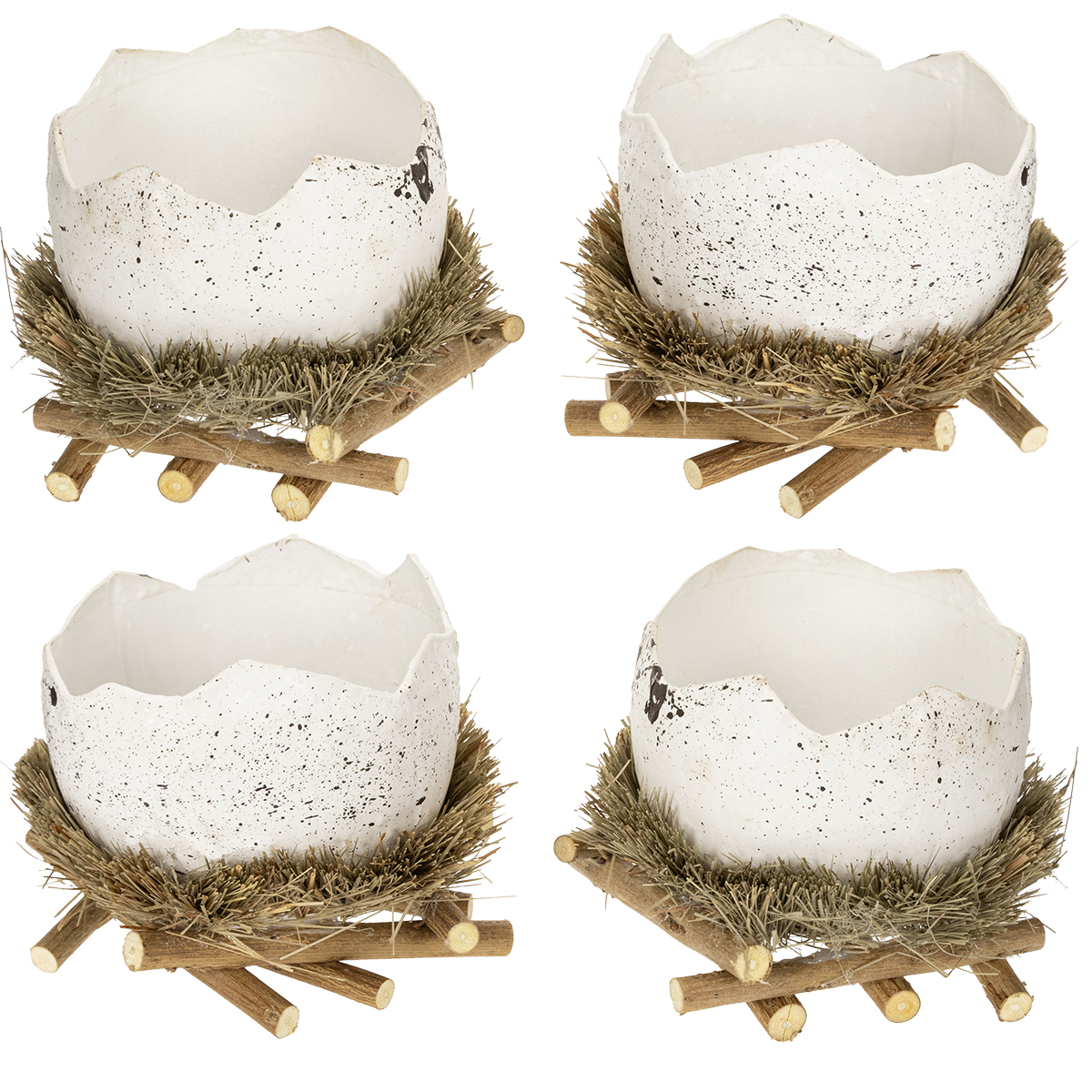 Produktnavn: Påske redeskål i æggeform til forårsdekoration 11 cm 4 stk.