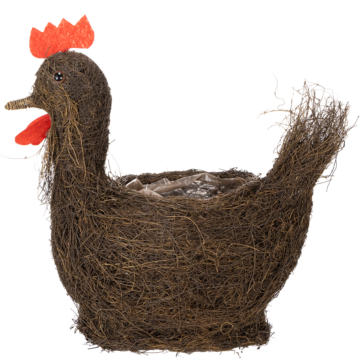 Denne dekorative kylling til plantning er ikke bare en vidunderlig påskedekoration - plantekurven lavet af naturlige vinstokke kan fyldes med blomsterdekorationer!