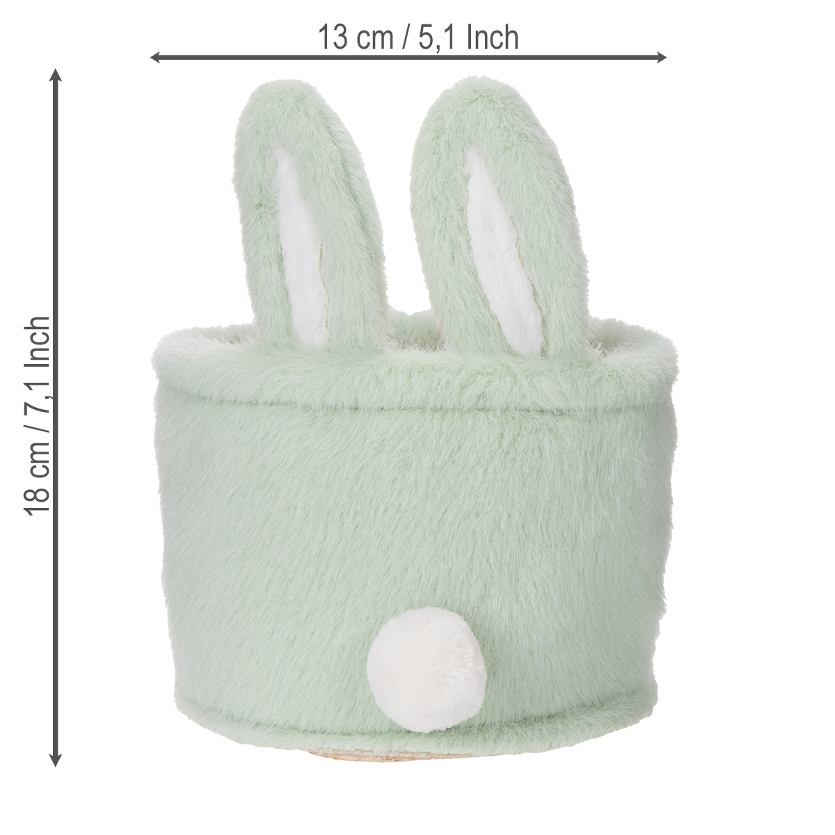 Disse kaninopbevaringskurve imponerer ikke kun med deres udseende, men også med deres høje kvalitet og praktiske størrelse. Med en højde på 18 cm og en diameter på 13 cm er de kompakte nok til ikke at være påtrængende, men tilbyder stadig rigelig opbevaringsplads til småting. De søde kaninører og den bløde pompon på bagsiden af kurven gør dem til en original og funktionel dekorativ idé. Perfekt til at gøre et børneværelse endnu hyggeligere eller til at tilføje sæsonbestemte farvestrejf til stuen.