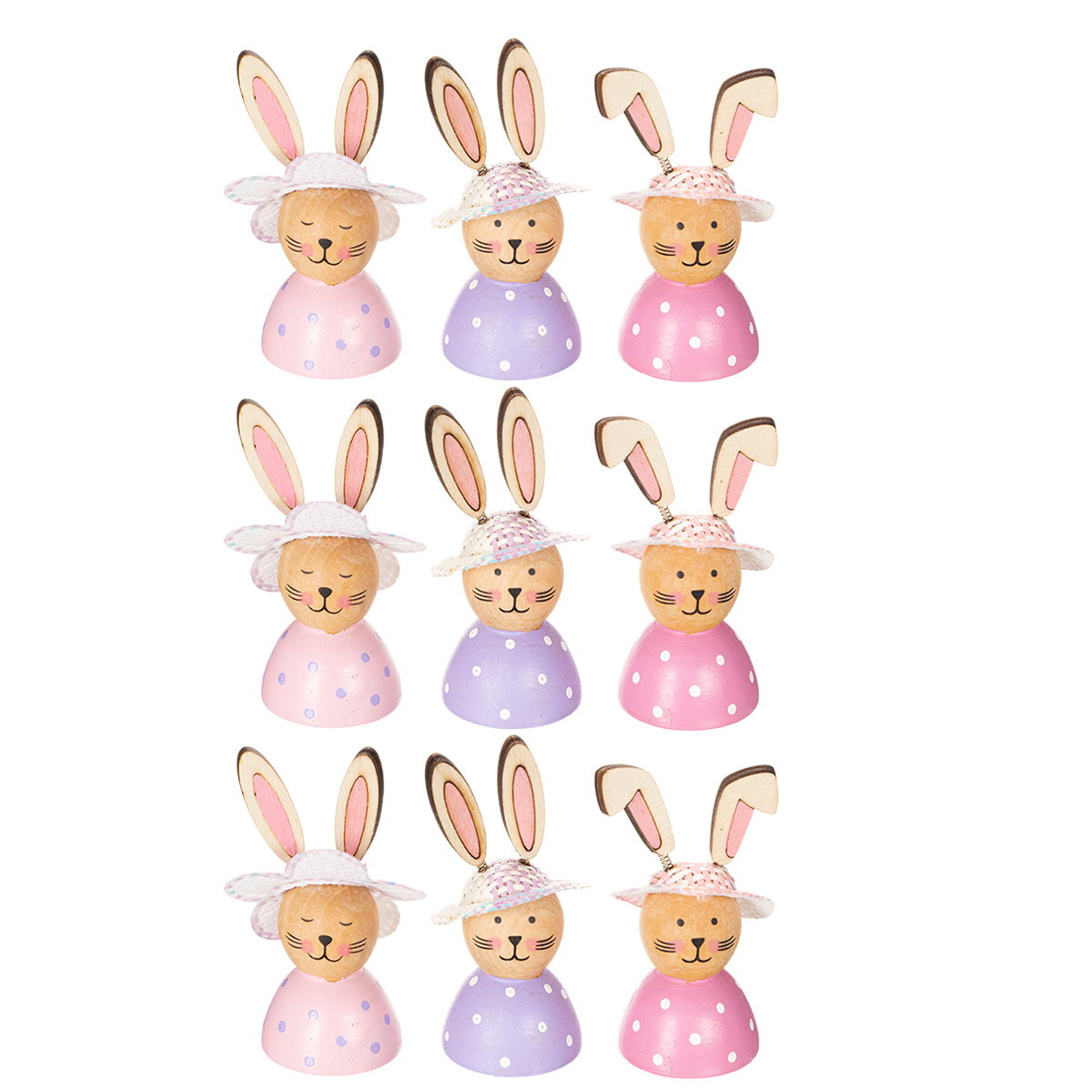 Påskehare borddekoration til foråret, dekorative harer med hatte, 7 cm, 9 stk.