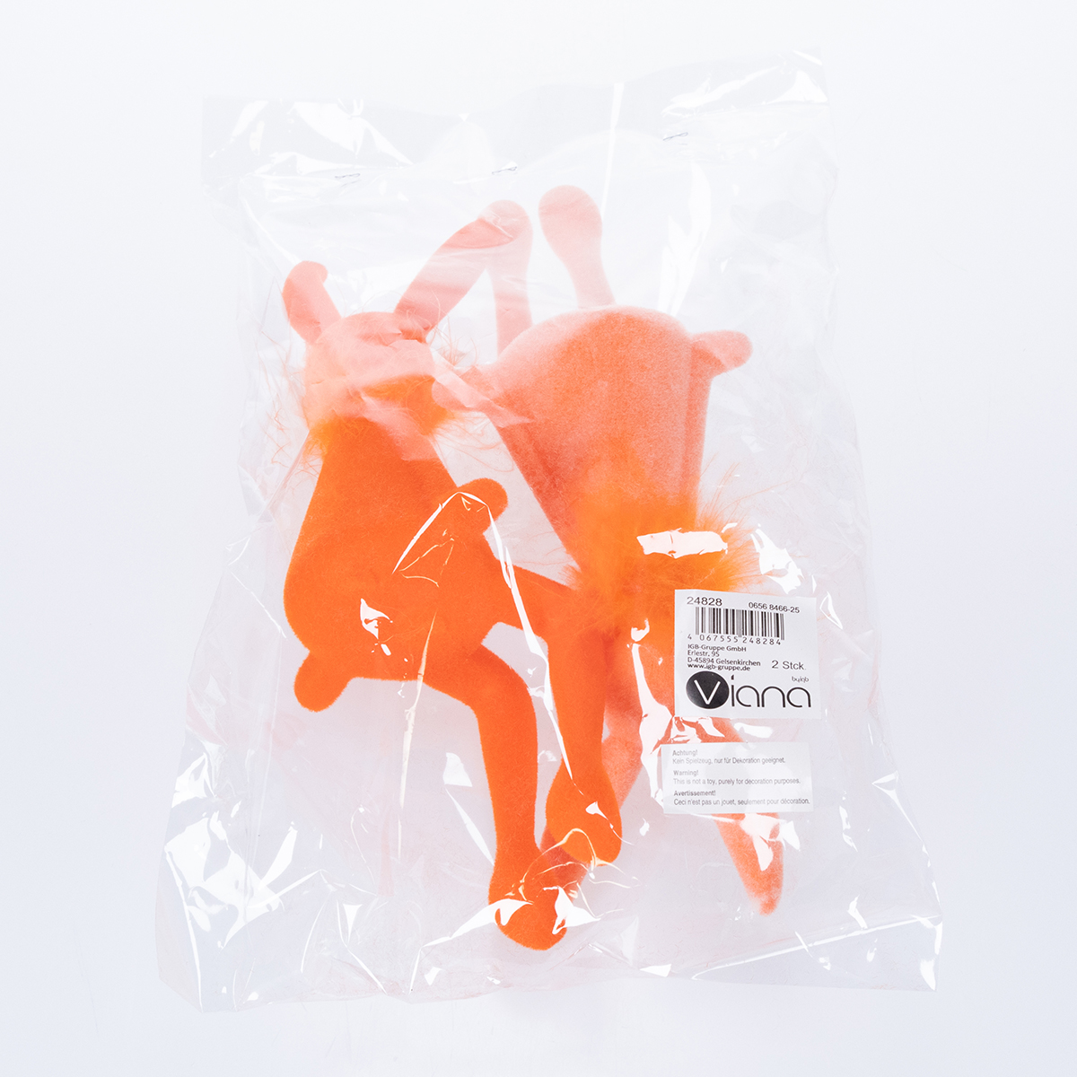 Disse påskeharefigurer fortryller med deres originale, men moderne design. Med en højde på 27 cm imponerer de med deres harmoniske former og exceptionelle materiale. Den fløjlsbløde, flockede plastik i laksefarvet og livlig orange er ikke kun visuelt slående, men også behagelig at røre ved. Den lille fjerboa lavet af ægte fjer giver kaninerne et særligt præg. Uanset om de bruges som bordpynt i stuen, i vindueskarmen eller som et legende tilbehør i entréen – mulighederne er nærmest uendelige.