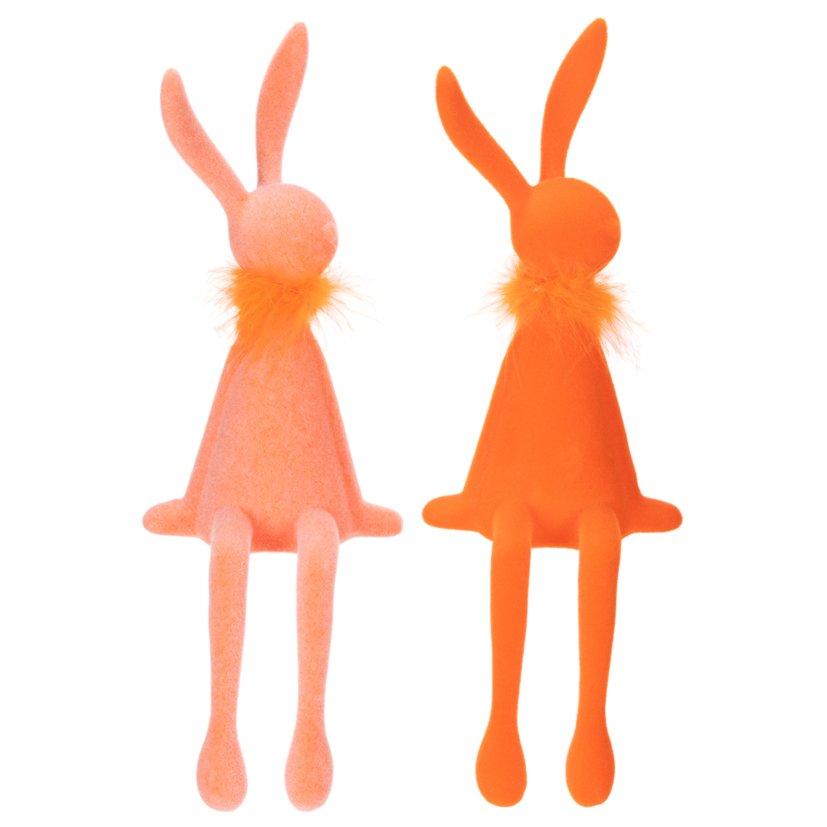 Disse påskefigurer, perfekte til at stå på hylder, imponerer ved første øjekast med deres moderne, minimalistiske design i to attraktive farver. De livlige nuancer – lakserød og orange – skaber øjeblikkeligt en munter forårsstemning og forbedrer enhver dekoration uden at være overvældende. Figurerne har en let, fløjlsblød, floket finish, der giver dem et højkvalitetspræg og et elegant touch. De fremstår sofistikerede, men alligevel legende og livlige – ligesom foråret selv.
