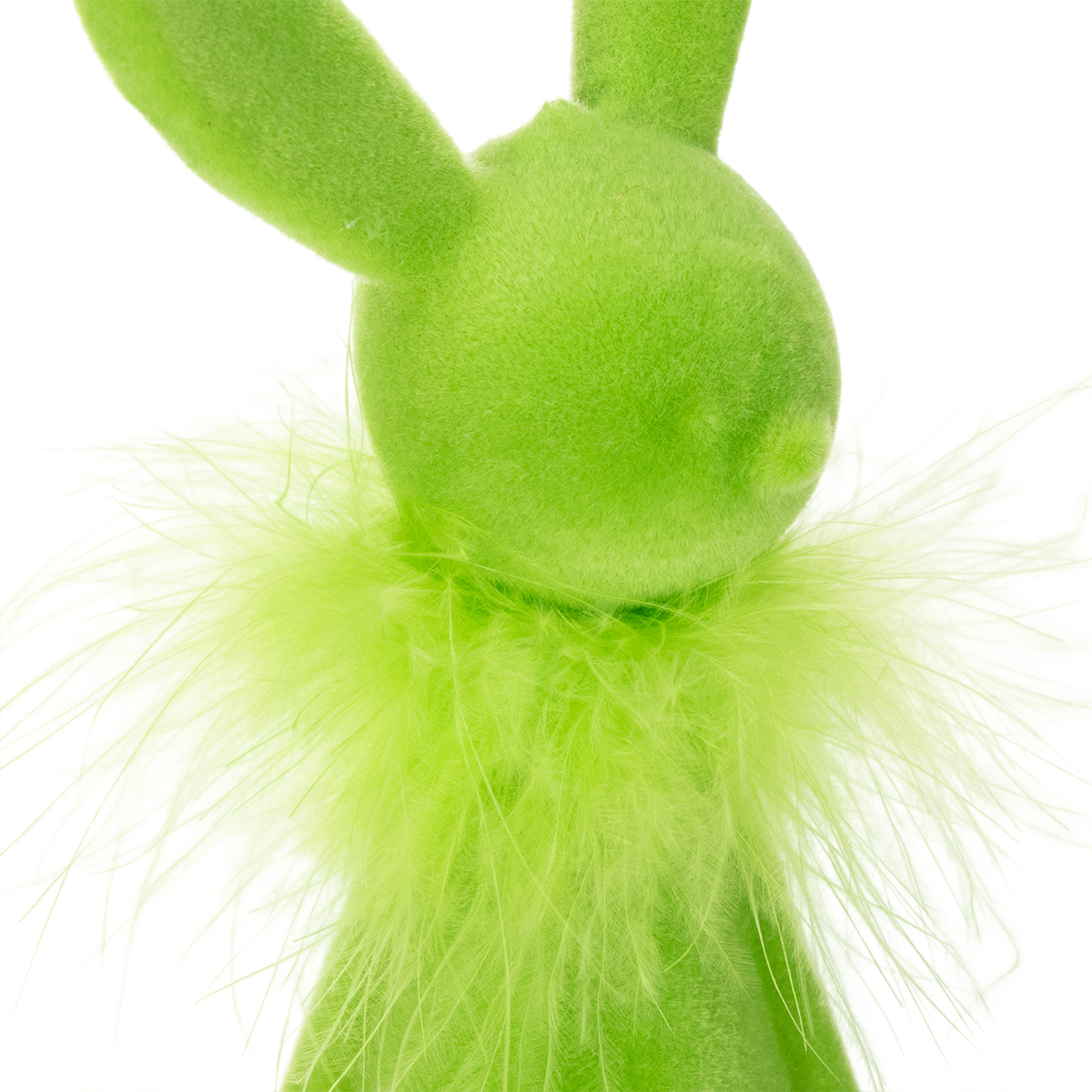 Kender du den følelse? Foråret nærmer sig, og du vil forvandle dit hjem til en hyggelig, men samtidig levende forårsoase. Vores siddende plastikpåskeharedekoration er det perfekte højdepunkt til dine påske- og forårspynt. Med en højde på 27 cm og kunstnerisk designede detaljer bringer denne dekorative figur farve og glæde til ethvert hjem. Uanset om den er i vindueskarmen, som bordpynt eller blot på en hylde i stuen, ser denne charmerende hare altid godt ud. Sættet indeholder to påskeharer i forskellige nuancer af grønt – en lysegrøn og en mørkegrøn – hver prydet med en diskret fjerboa. Helt enkelt charmerende: en tidløs kombination af munterhed og moderne design, der passer problemfrit ind i enhver stil.