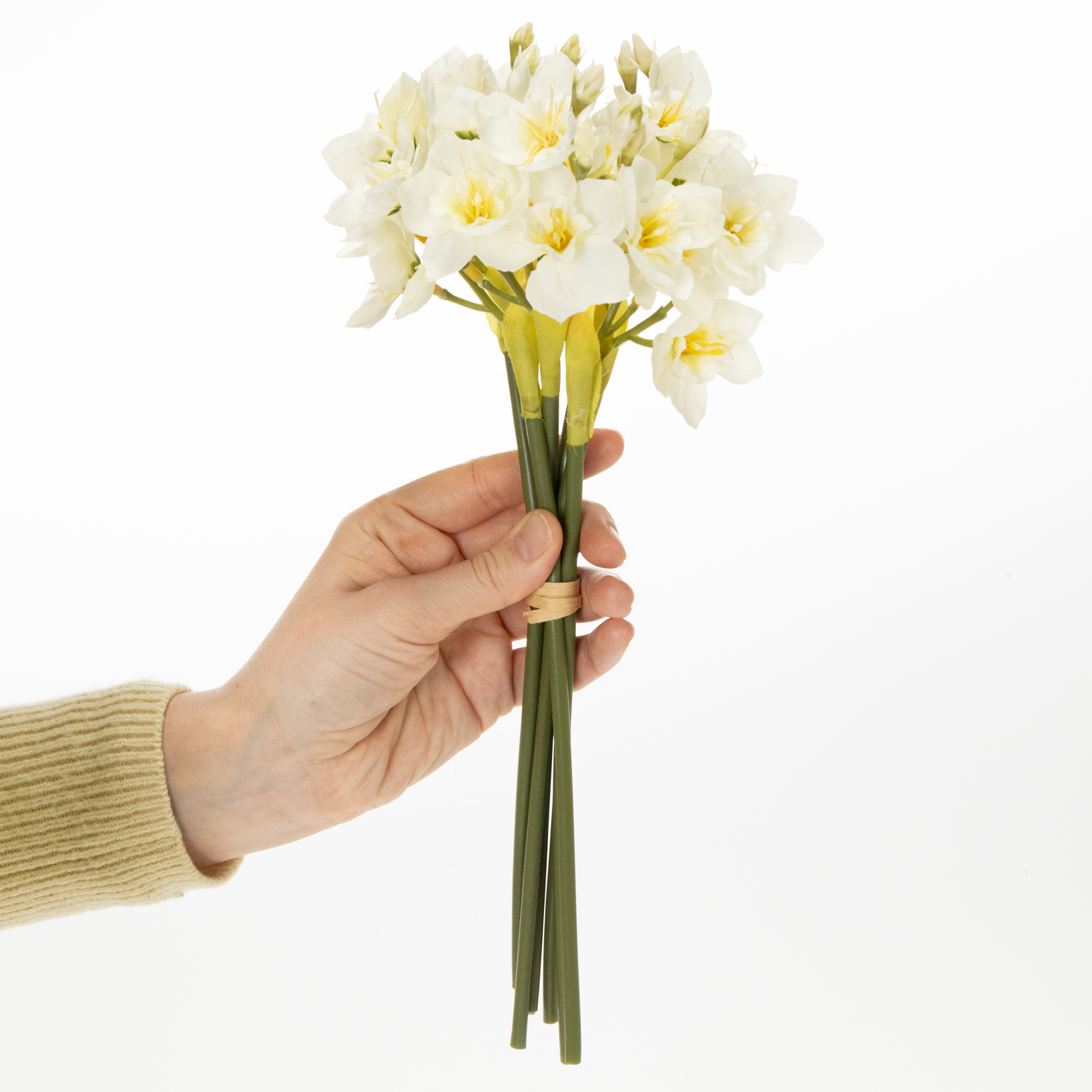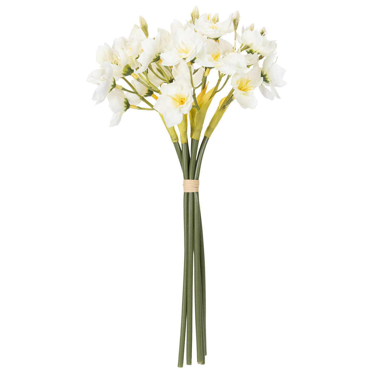 Den perfekte dekoration til dit bryllup eller sæsonbestemte blomsterdekorationer: Vores påskeliljegren kombinerer skønhed og praktisk alsidighed. Forestil dig, hvordan disse kunstfærdigt fremstillede hvide blomster vil komplementere din borddækning eller skabe en romantisk brudebuket. Dine gæster vil blive henrykte! Med en længde på 33 cm og et naturtro design ser disse kunstige påskeliljer ud, som om de er blevet plukket – og alt sammen uden nogen form for vedligeholdelse.