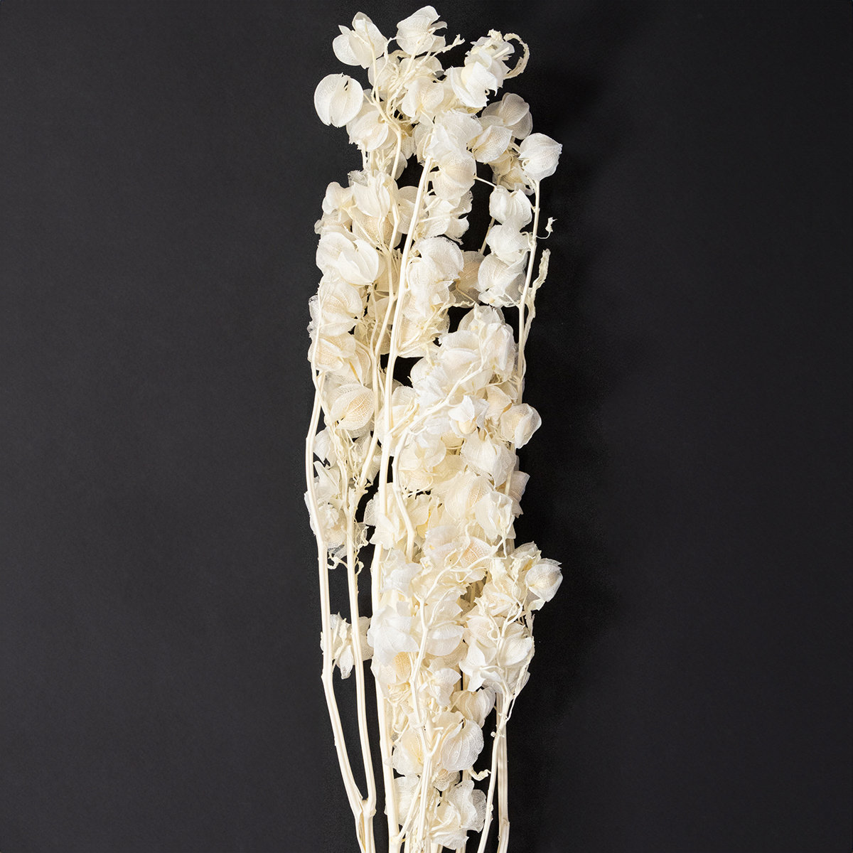 De robuste stilke og de fint gennemskinnelige lanternehylstre gør dem ideelle til alle dekorative projekter. Placer dem i høje vaser for at skabe et tidløst midtpunkt på bordet, brug dem som en del af en kunstnerisk buket tørrede blomster, eller pynt dine gør-det-selv-kranse med en cremet hvid accent. Disse lanterneblomster afslører deres fulde pragt, især når de kombineres med naturlige materialer som eukalyptus, hvedegræs eller palmeblade. Hvis du kan lide kontrast, kan du også arrangere dem med mørke accenter som sort pampasgræs!