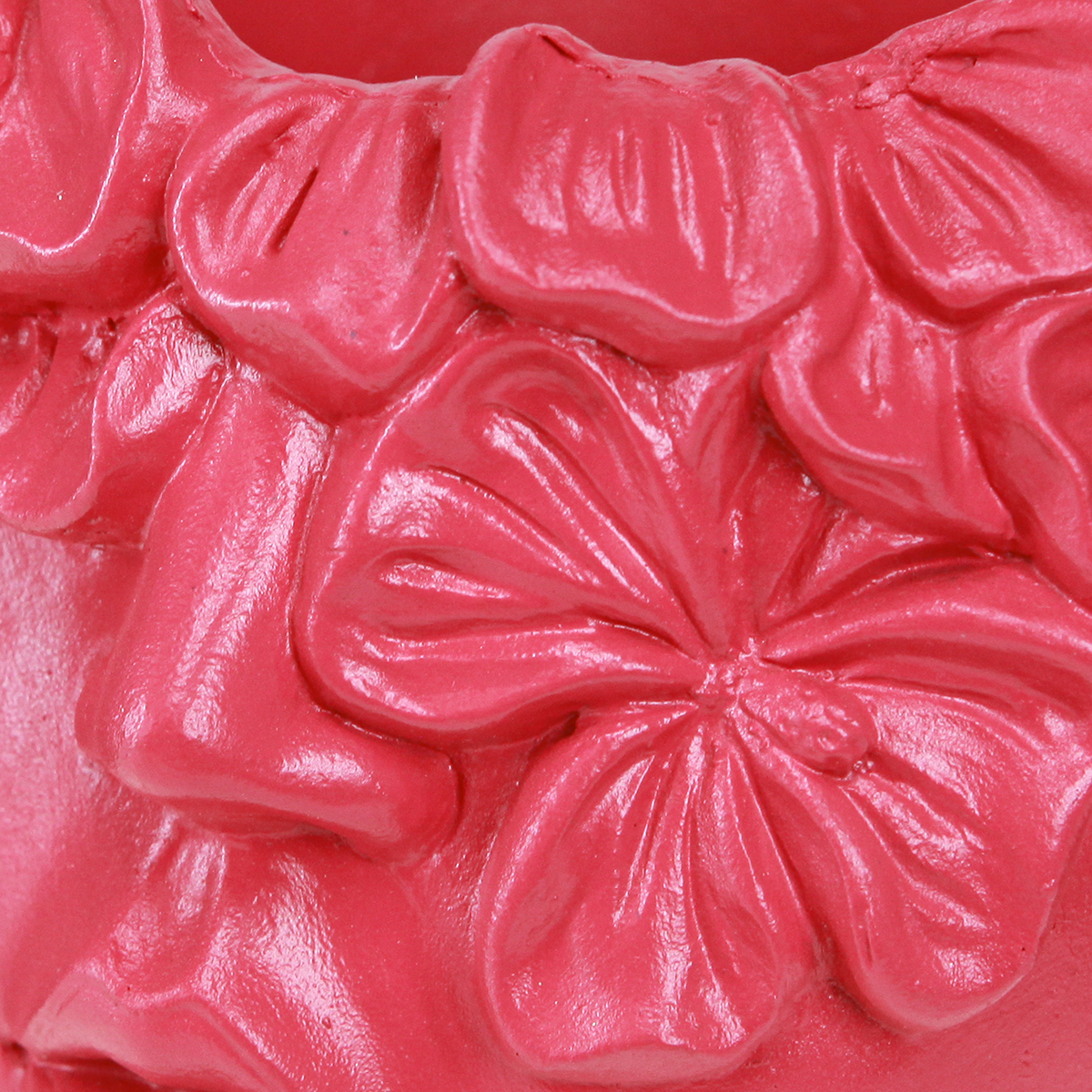 I blomstersproget repræsenterer plantehovedets stærke lyserøde farve leg, ungdommelighed og energi. Denne skygge bringer liv til ethvert rum og kan fremme glæde og kreativitet. Polyresin som materiale giver plantekassen en holdbar og letplejende tekstur, som er ideel til dekoratører og håndværksentusiaster, der leder efter fleksibel, men holdbar dekoration. Pink kan kombineres med bløde pasteltoner eller kontrastfarver som grøn eller hvid for at understrege den ønskede atmosfære.