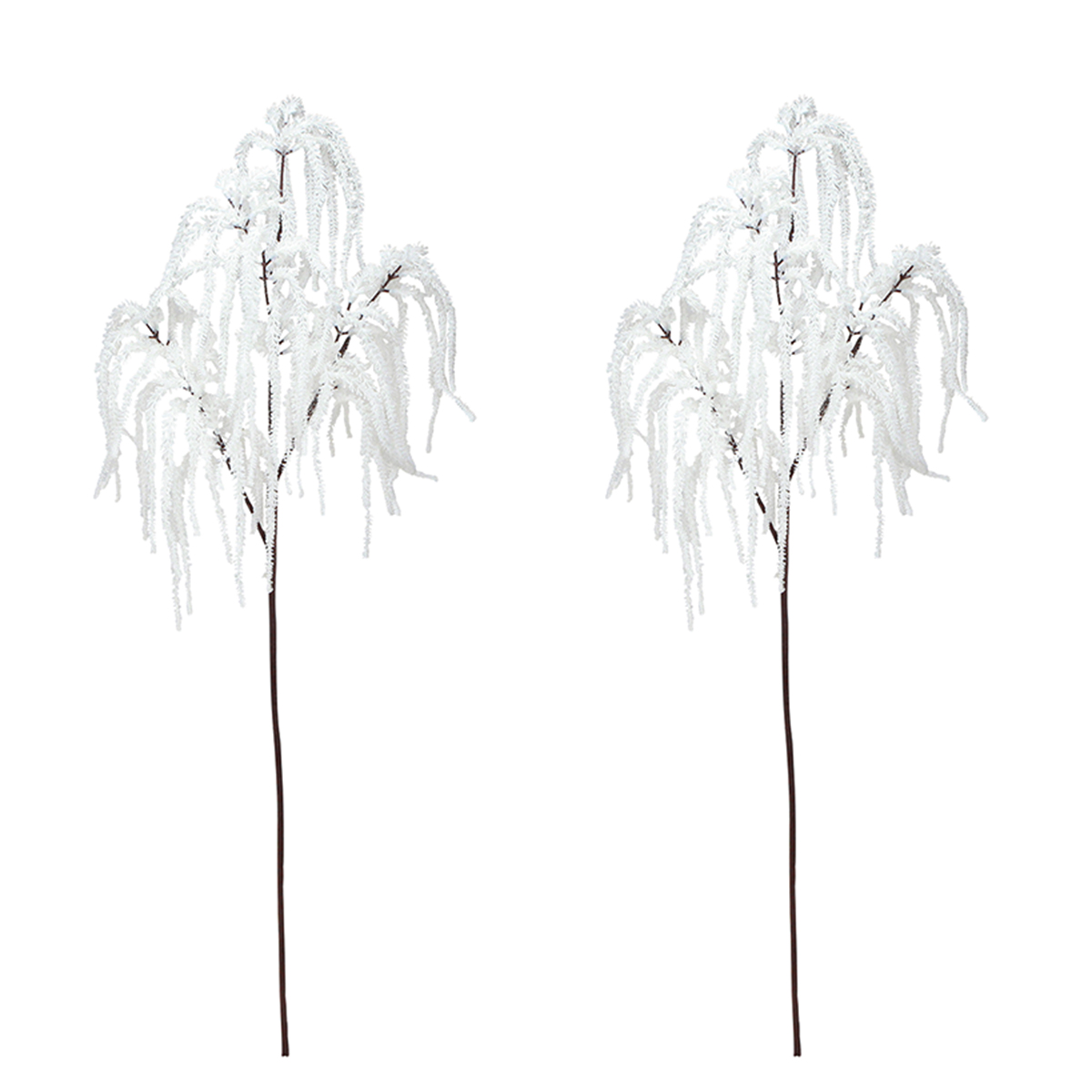 Pyntegren grædepil vinterdekoration hvid glitter 82cm 2stk