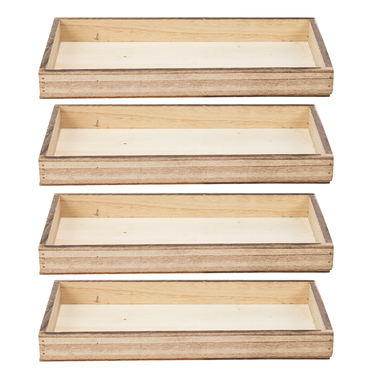Produktnavn: Rektangulær træbakke, praktisk organizer, alsidig, robust design, 30 cm, 4 stk.
