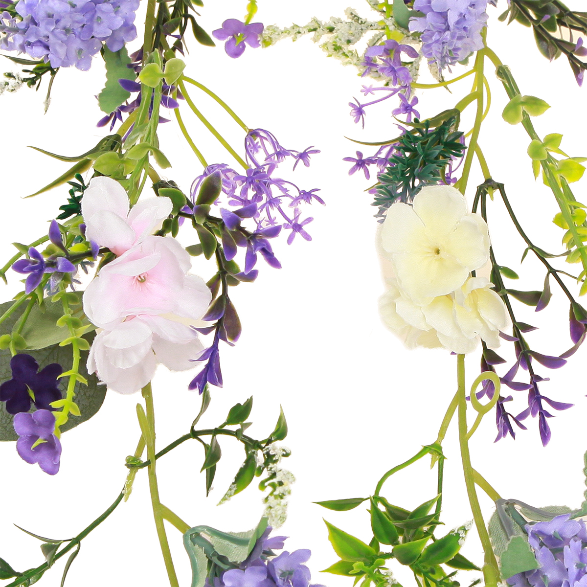 Romantisk blomsterguirlande i lilla pink hvid L194cm 2stk