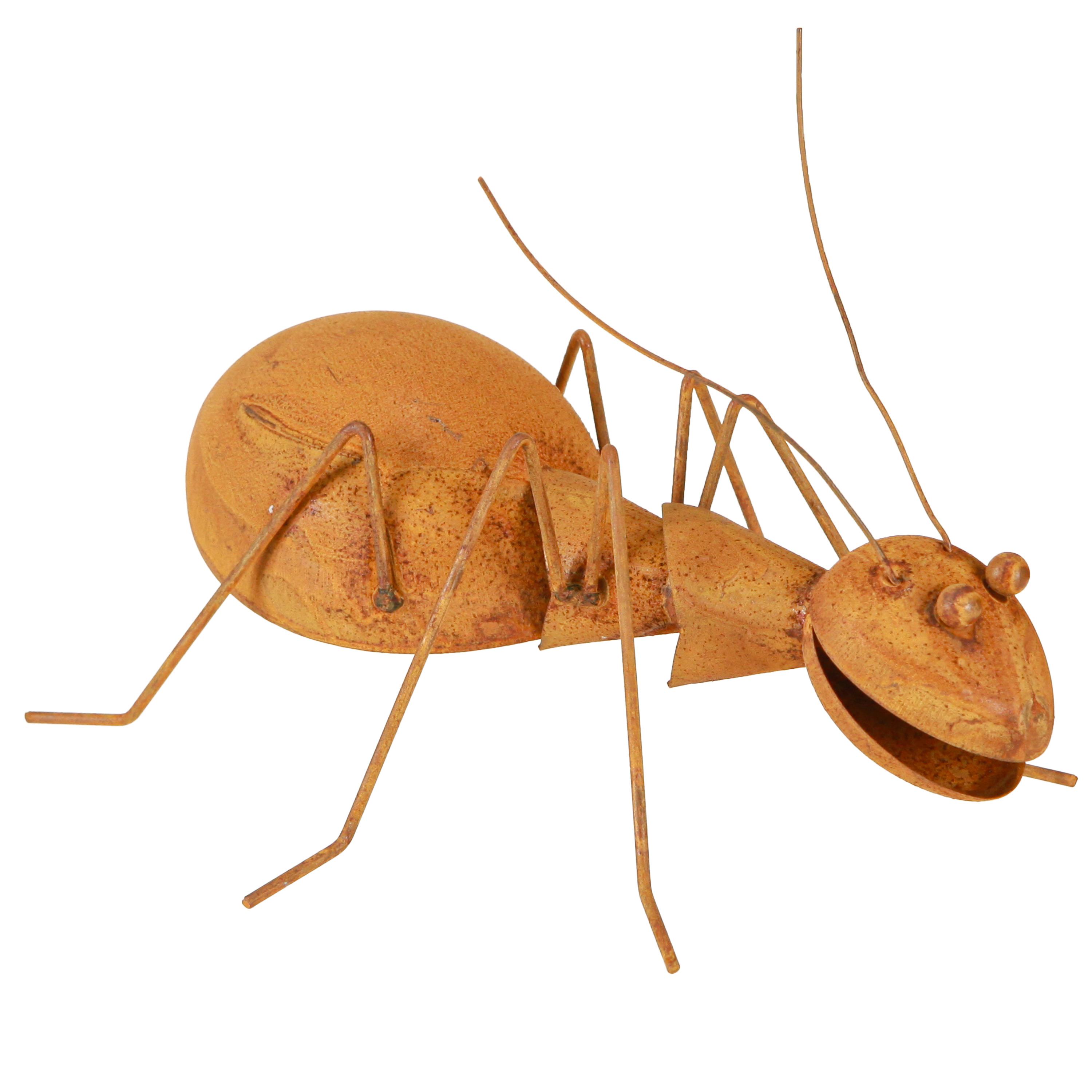 Det dekorative insekt er udelukkende lavet af metal. Rustpatinaen får havefiguren til at fremstå endnu mere livlig. Segmenteret krop, øjne, antenner og den vidt åbne mund – det er disse detaljer, der gør denne metaldekoration til noget særligt. Den dekorative myre står sikkert på sine seks ben.