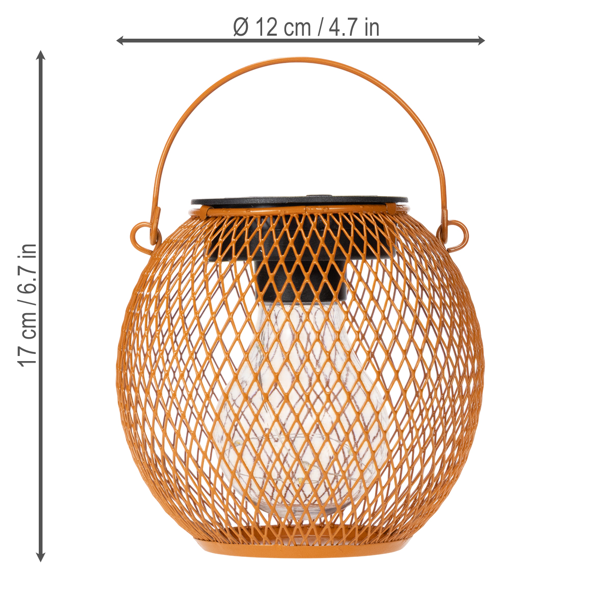 Denne solcellelanterne bringer ikke kun lys ind i dit liv, men også dekorativ charme til din have. Med sit bløde orange metalhus og yndefulde gittermønster passer den smukt ind i både moderne og rustikke indretningsstile. Det varme lys fra LED'en skaber en hyggelig atmosfære, mens det smarte solpanel anvender miljøvenlig teknologi. Med en højde på kun 12 cm er lampen både kompakt og diskret, men samtidig et slående designstatement. Takket være dens vejrbestandige egenskaber modstår den moderat luftfugtighed, vind og sol hele sommeren – perfekt til udendørs brug!
