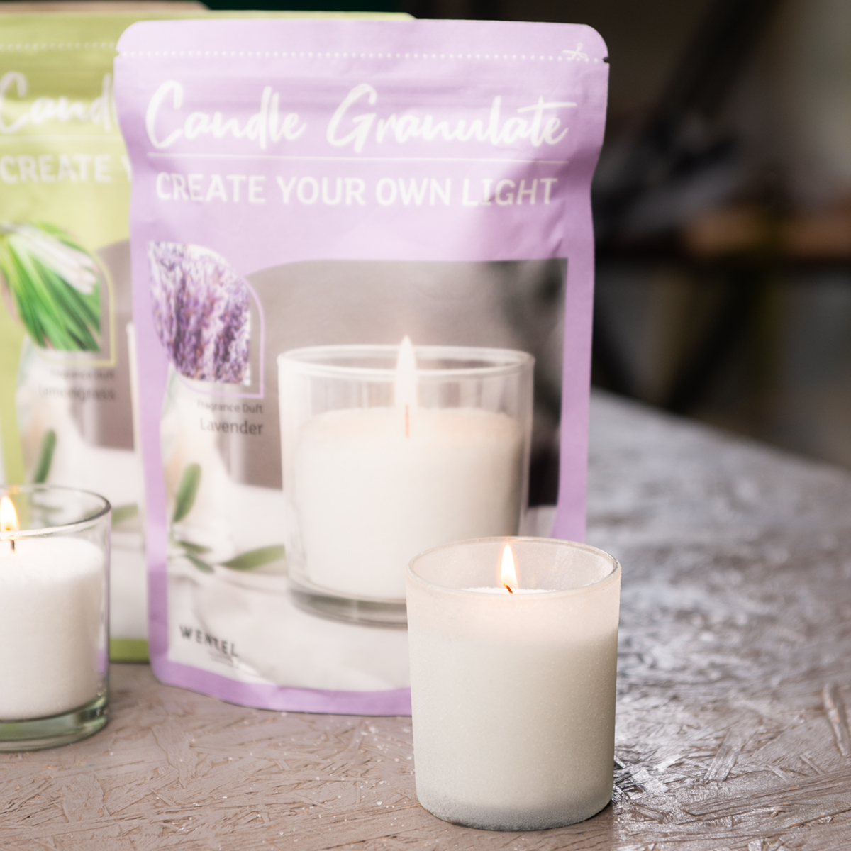 Med stearinlyssand kan du stole på en enkel og ren metode til selv at lave stearinlys. Vores voksgranulat til stearinlys er perfekt egnet til duftlys i glas og tilbyder en base af høj kvalitet. Den vedhæftede vejledning forklarer i enkle trin, hvordan du selv kan lave stearinlys. Tilsæt blot voksgranulatet til et glas, placer vægen med vægeholderen og nyd hurtigt den afslappende atmosfære, som lavendelduften fremtryller i dit værelse.