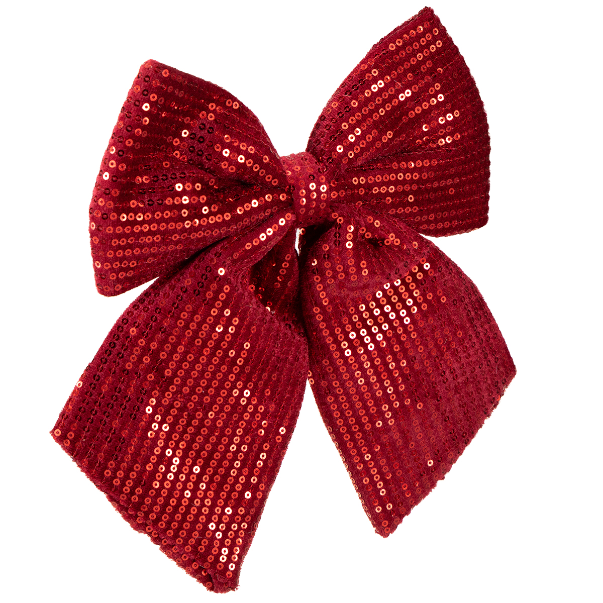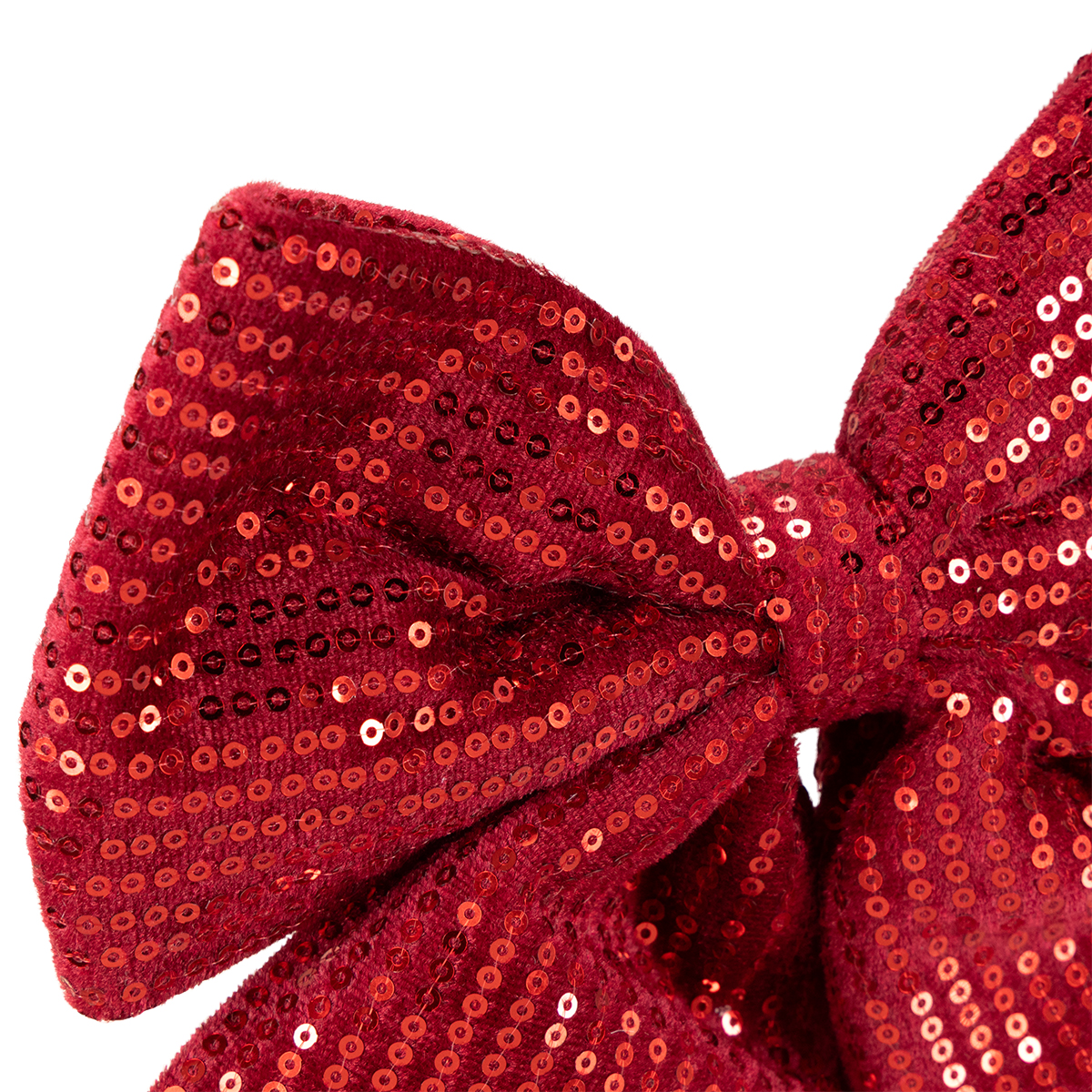Stor fløjlssløjfe i mørkerød – elegance og pailletter med festlig glans