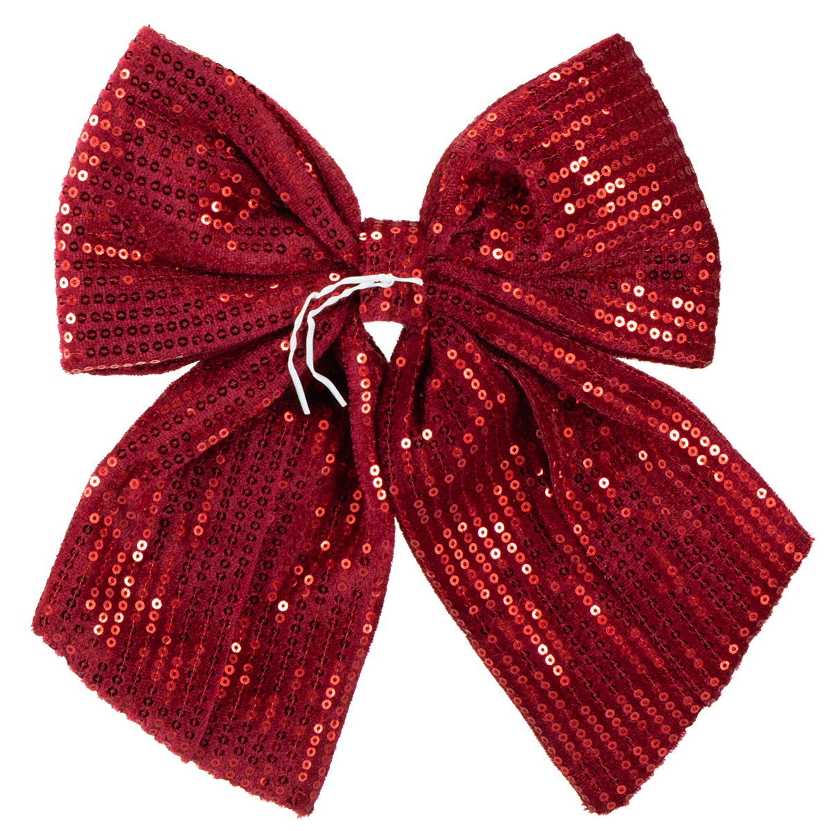 Produktnavn: Stor fløjlssløjfe med pailletter mørkerød 20×22 cm 2 stk.