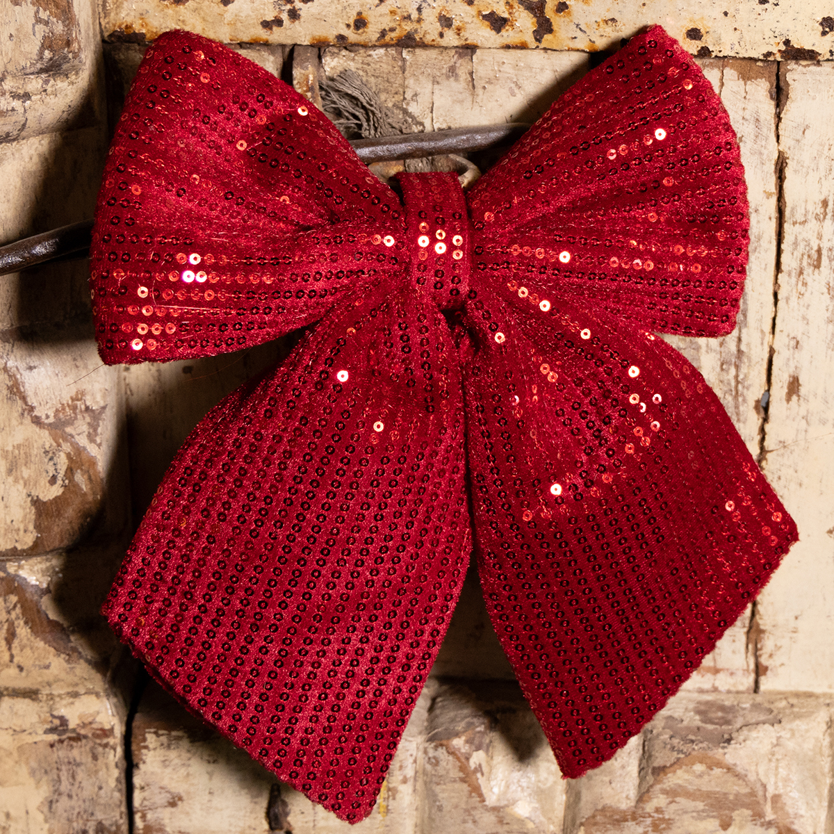 Stor fløjlssløjfe i mørkerød – elegance og pailletter med festlig glans
