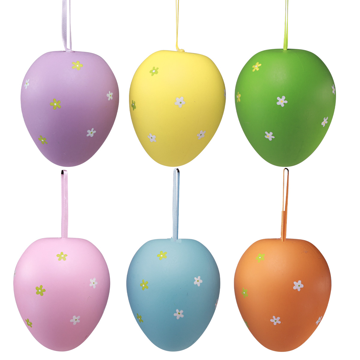 Du modtager de store påskeæg i 6 stykker i 6 forskellige farver med et matchende bånd som bøjle.