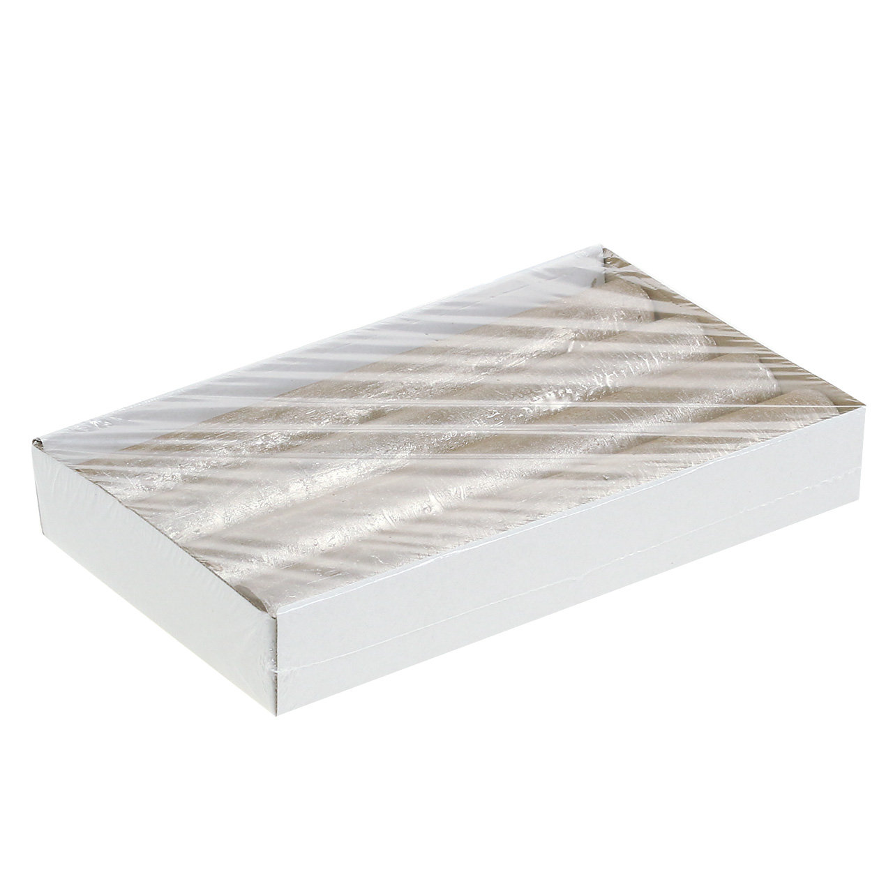 De champagnefarvede, solidfarvede stanglys måler cirka 300 millimeter i højden og cirka 34 millimeter i diameter og har en brændtid på cirka 30 timer. Du får premium stearinlys i et sæt på 4 i en emballage lavet af pap og plast.