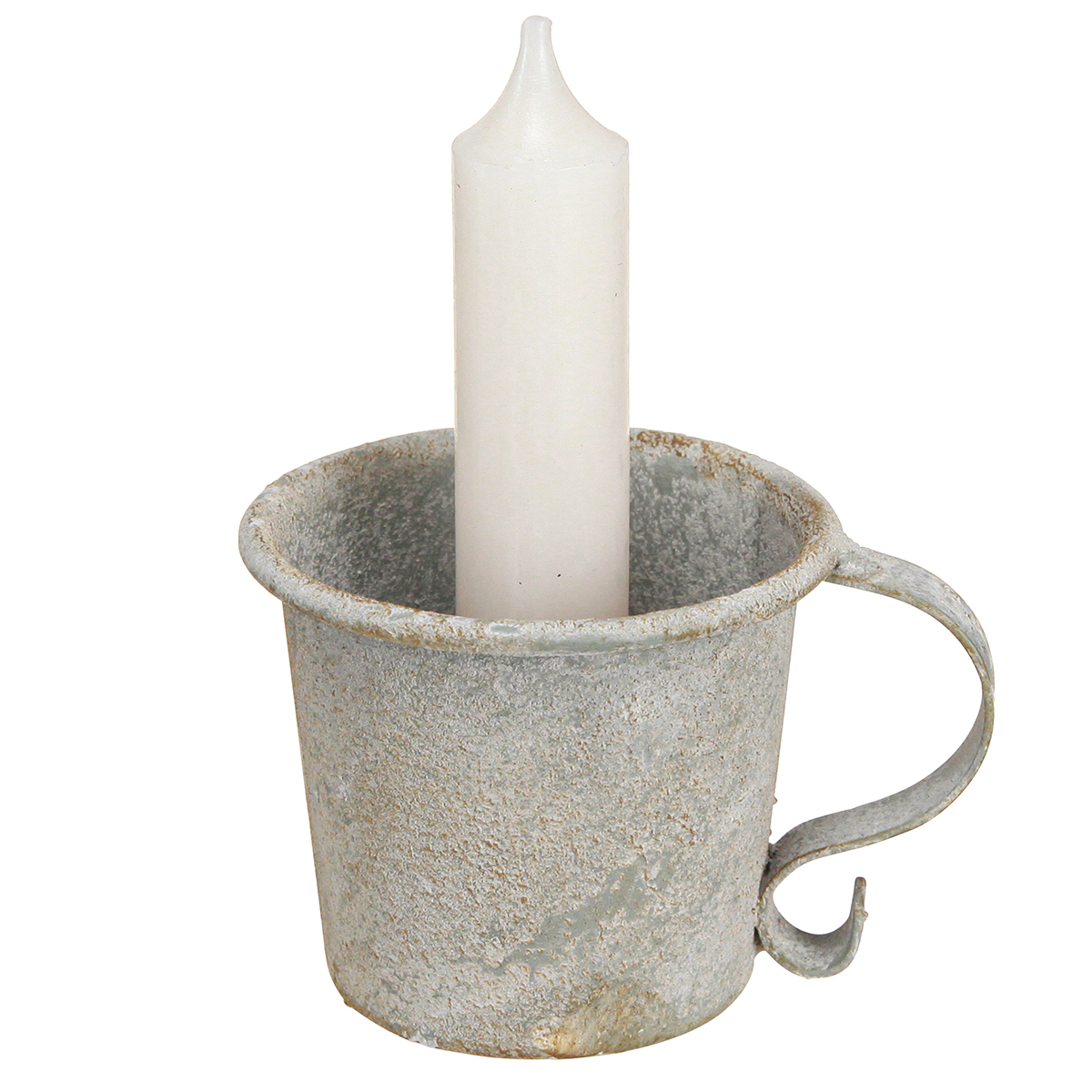 Tilspidset lysestage vintage kop metalgrå Ø7cm H6cm 2stk