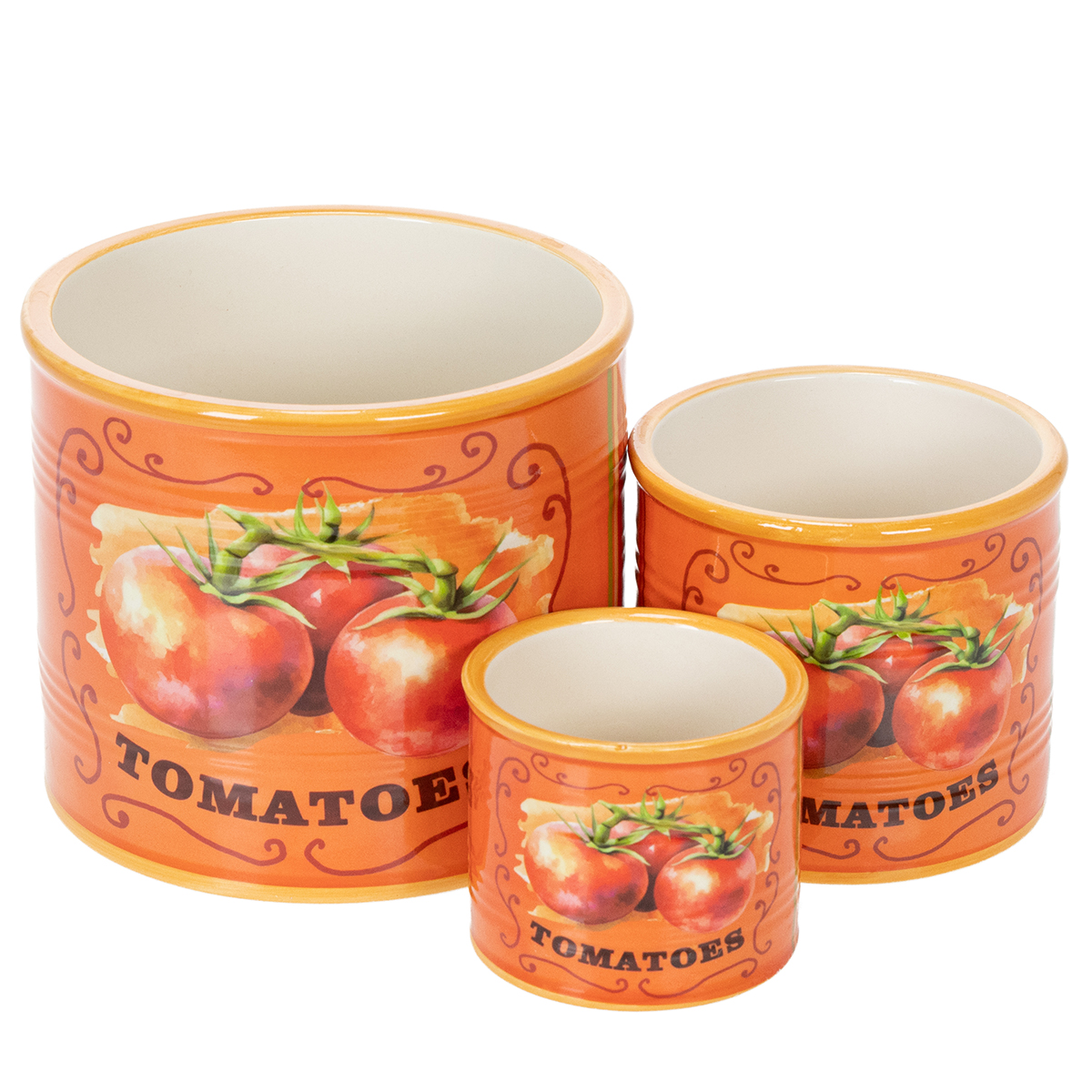 Tomatplantepottesæt, keramiske dekorative blomsterpotter til køkken og retroindretning, 14 cm, sæt med 3