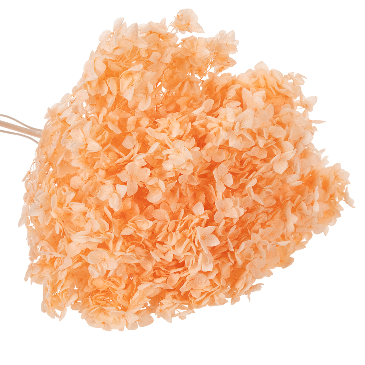 Køb en tørret blomsterbuket: Hortensia i en elegant lys orange farve