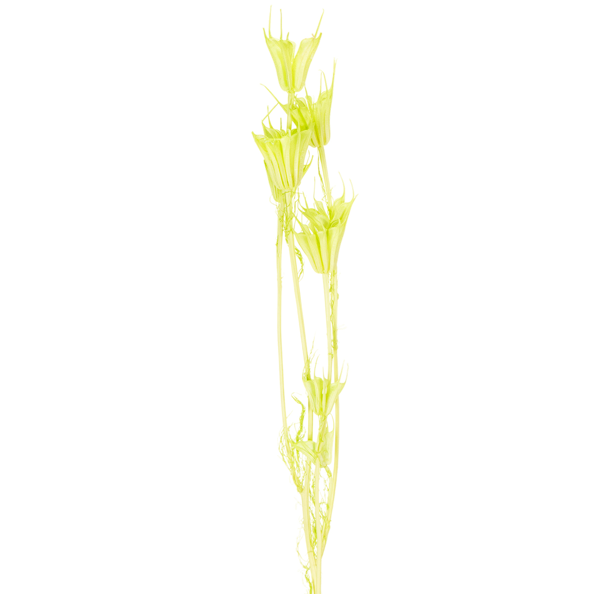 Tørrede Nigella-blomster imponerer med deres attraktive design og livlige grønne farve og forbedrer ethvert rum. Deres delikate teksturer inviterer dig til at udforske nye indretningsidéer. Arranger de tørrede blomster f.eks. i en simpel glasvase, eller kombiner dem med andre naturlige materialer såsom træ eller tørret eukalyptus. Takket være deres bæredygtige natur er de holdbare og kræver ingen omfattende pleje. Eventuelt støv, der måtte ophobes, kan nemt fjernes med en støvkost. Disse tørrede blomster er særligt velegnede til indendørs brug, men kan også skabe en smuk effekt i beskyttede udendørsområder.