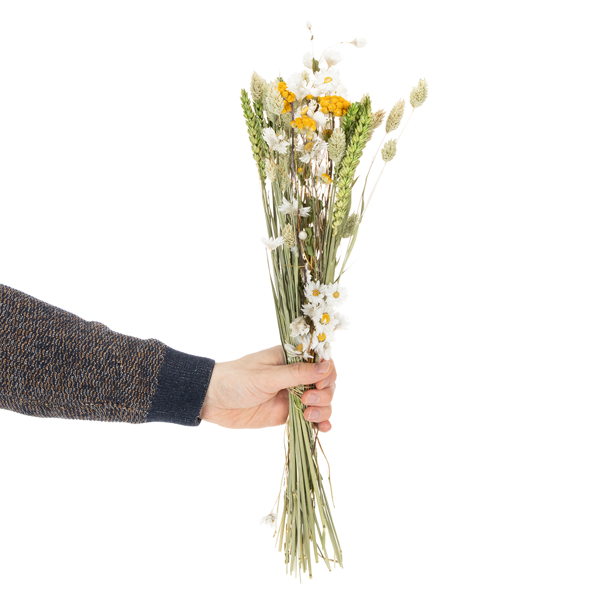 Takket være de naturlige og holdbare materialer er denne buket nem at pleje og bevarer sine livlige farver i årevis. En blid afpudsning er alt, hvad der skal til for at bevare dens skønhed. Den er også et vidunderligt alternativ til friske blomster, da den hverken kræver vand eller særlig pleje. Oplev tørrede blomsterdekorationer, når de er bedst!