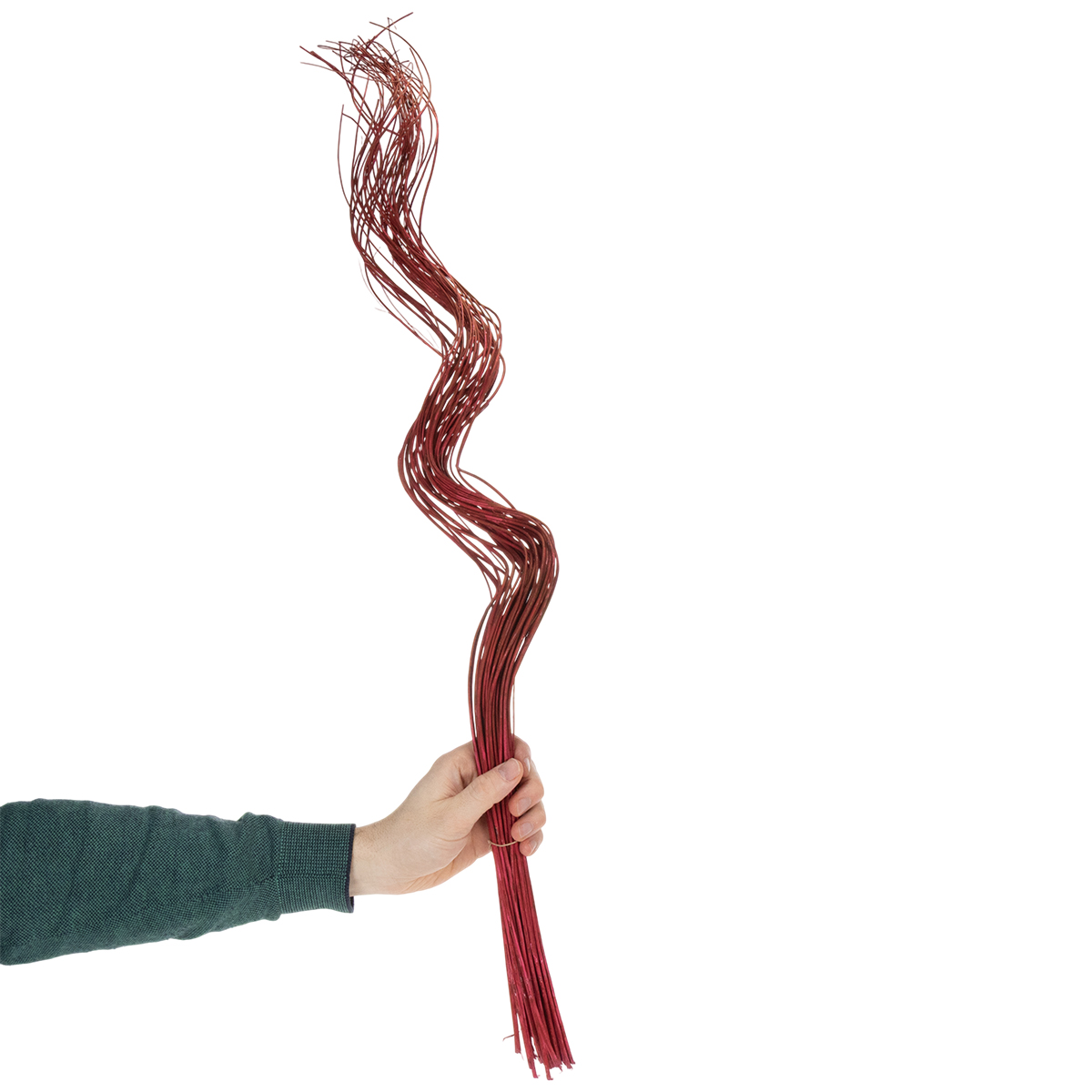 De røde, krøllede pilegrene imponerer med deres naturlige elegance og alsidighed. Brug dem til at tilføje et originalt præg til din bordpynt, eller vis dem frem som vægkunst. Grenene stråler virkelig i moderne, skandinavisk eller rustik indretning. De fungerer også smukt som en charmerende detalje i landlige hjem. Med en længde på cirka 80 centimeter gør grenenes fine tekstur dem ideelle til at kombinere med tørrede blomster, kunstige blomster eller andre dekorative materialer. Bundtet indeholder cirka 40 grene med en samlet vægt på 70 gram – rigeligt til kreative dekorationsprojekter.